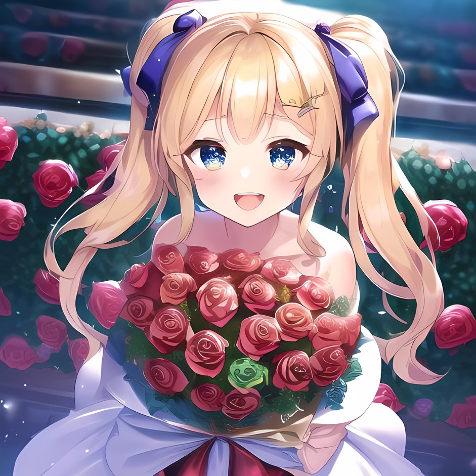くーにゃん金髪の可愛い子ツインテちゃんからの花束嬉しいのー💖