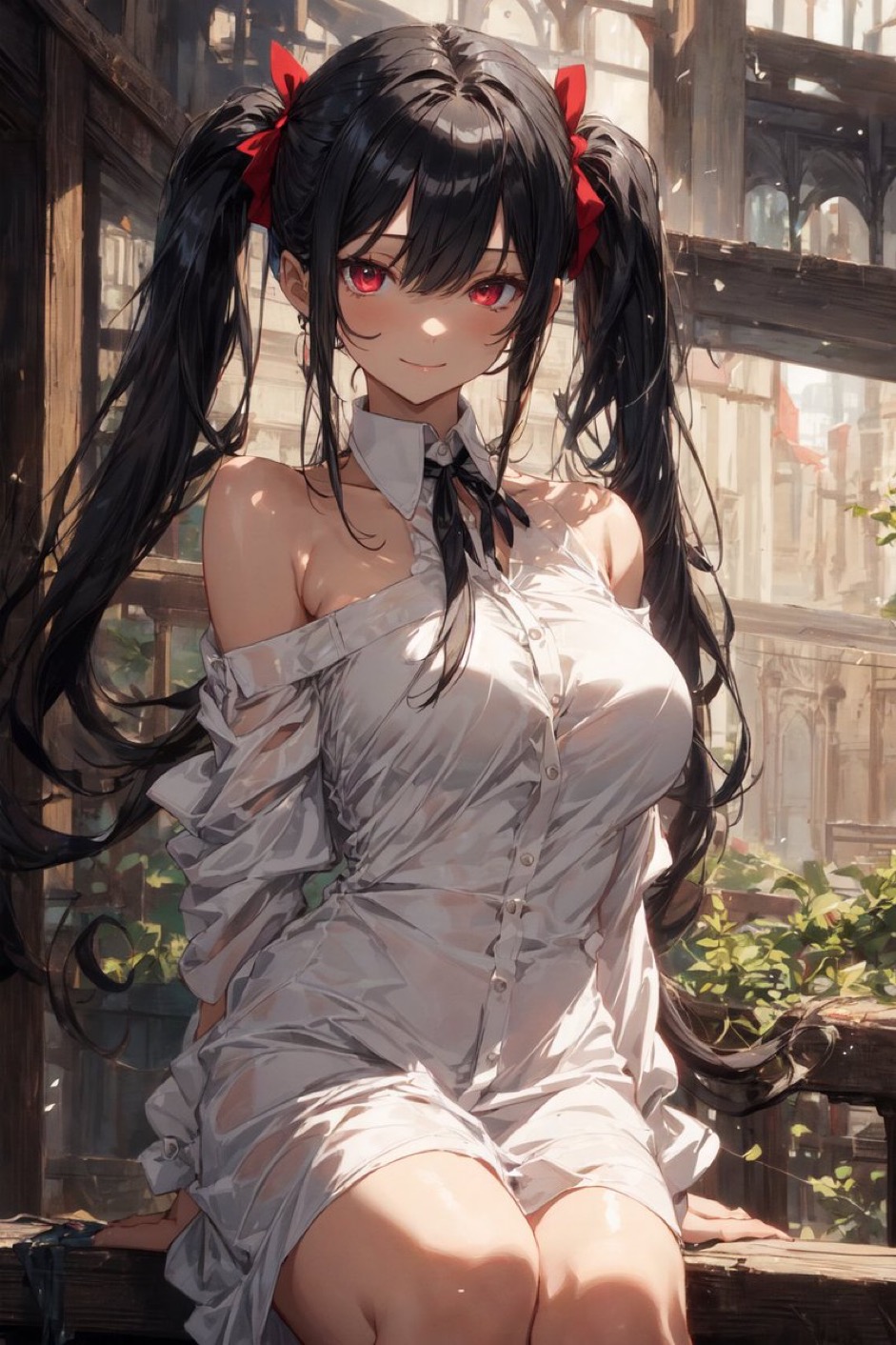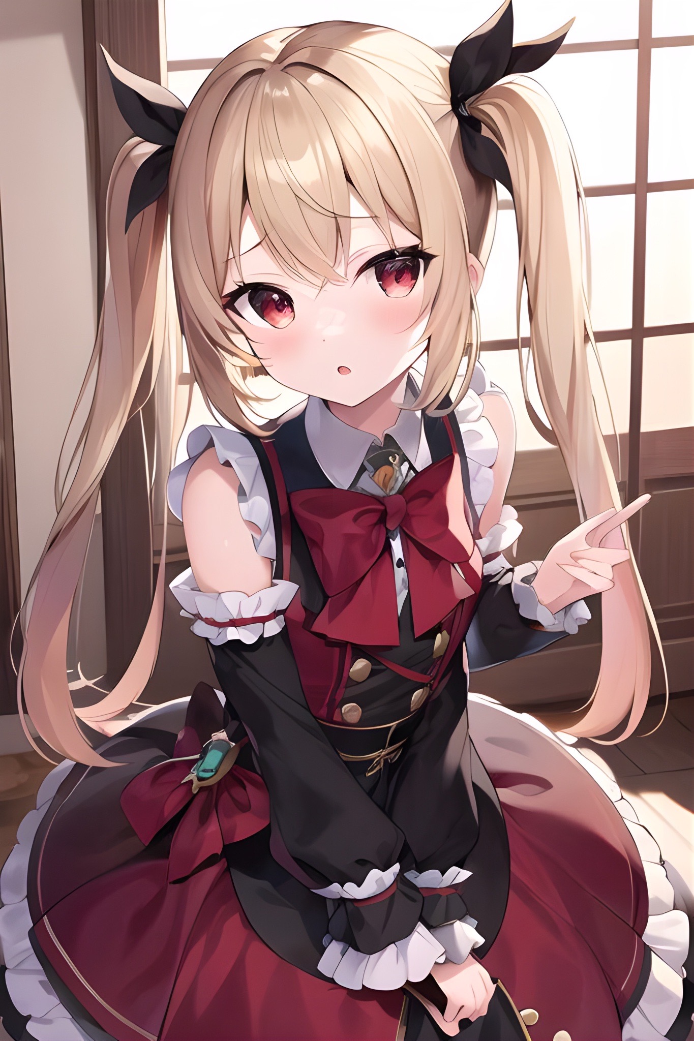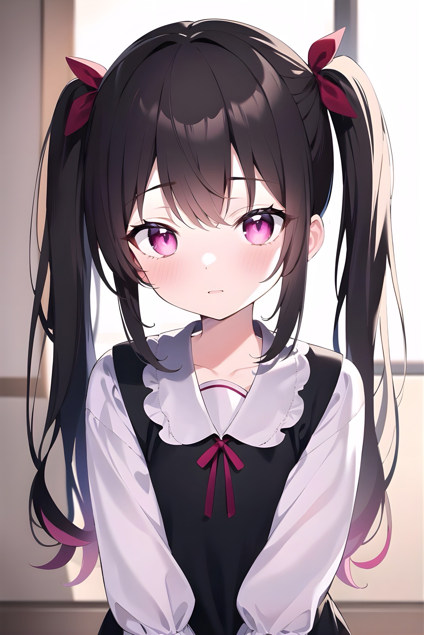// つくにゃんv5.0.6-L01a ライト版 (((lovely big red eyes)):1.5) , BREAK (high top twintail with beautiful medium long black hair:1.4) , (black shiny hair:1.5) , (sidelocks:1.4) , BREAK