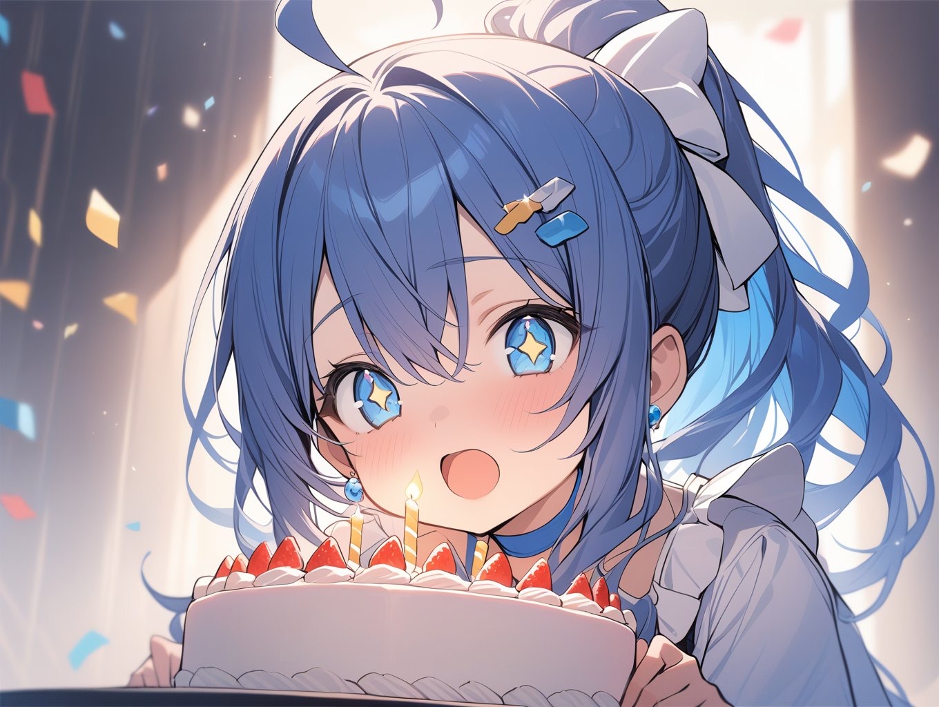 yanagidちゃん 私(あおにゃん)を描いてくれてありがとうございます⭐️ 甘いものが好きという設定をしっかりと組んでくれて嬉しいです❤️ ケーキを前にして目が輝いている私が可愛いのです🥰