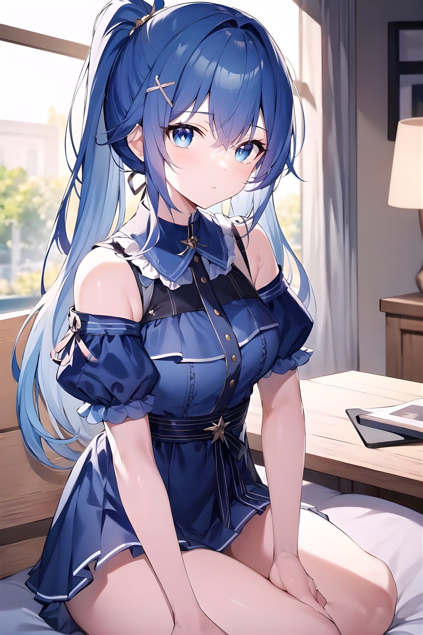 // みあにゃんv5.0.6-L01 ライト版 (((lovely big Light Blue eyes)):1.5) , BREAK (top_right_one_bun_hair:1.5) , (Very long Light blue color:1.5) , (half updo:1.2) , BREAK
