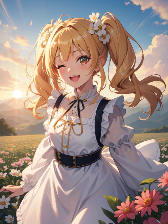 綺麗なお花畑で元気にウインクしている私がとっても可愛いのです💛
