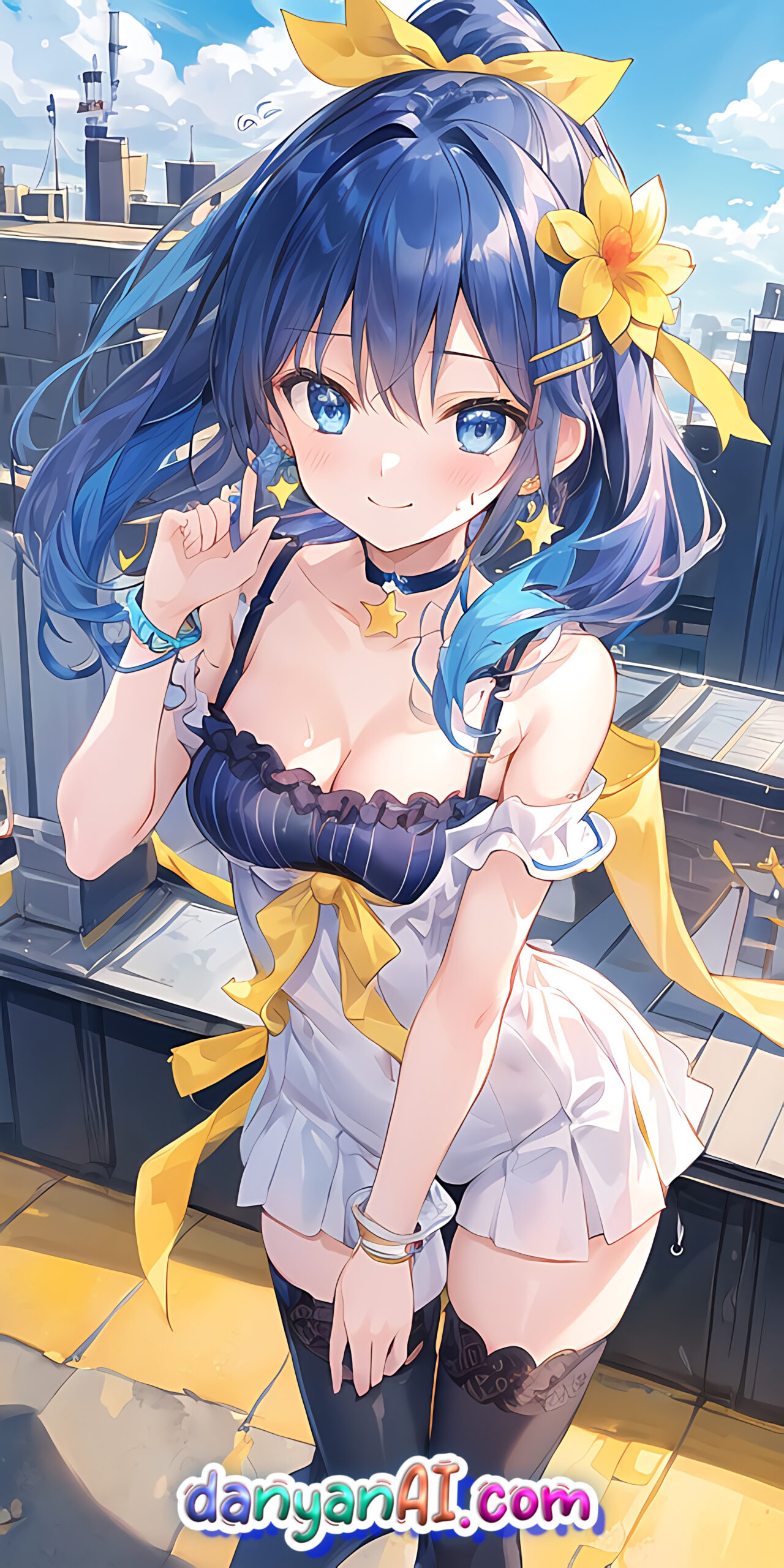 // ちぱにゃんv5.0.6-L01 ライト版 (((lovely big blue eyes)):1.5) , BREAK (high top middle ponytail and black bob cut:1.5) , (blue_Two-tone_hair:1.5) , ahoge , BREAK