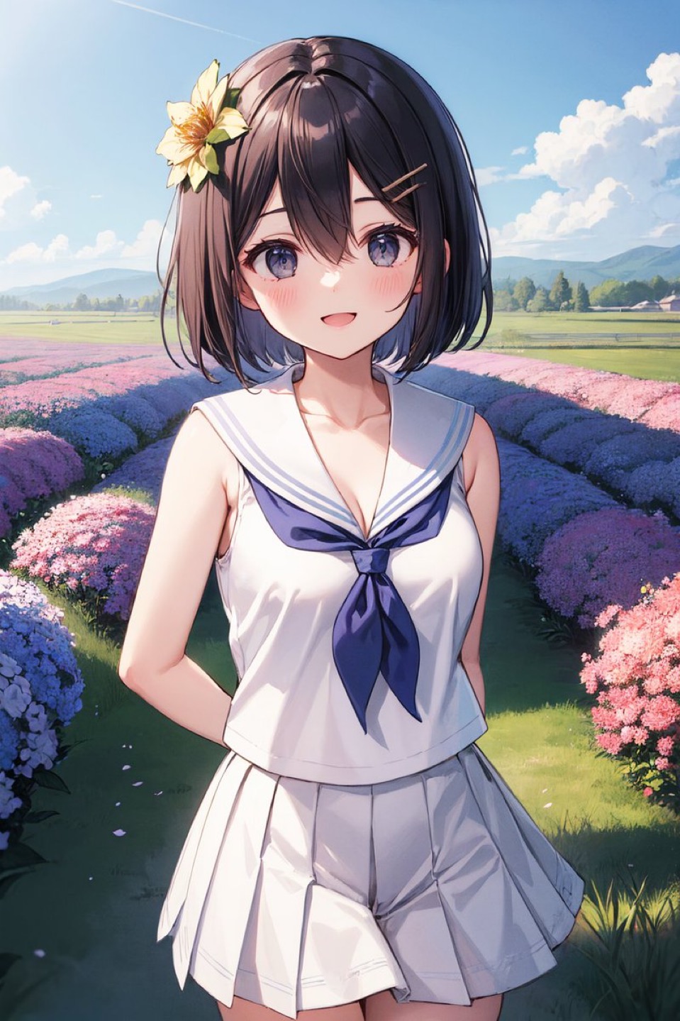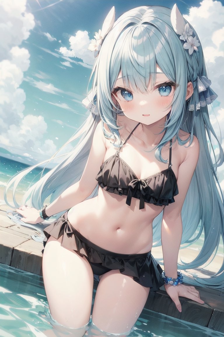 水着姿に花の髪飾りをつけた私がとっても可愛くて素敵です🥰