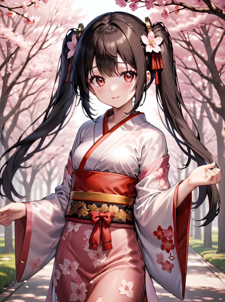 桜模様の晴れ着に桜の髪飾りがとっても似合って可愛いのです💖