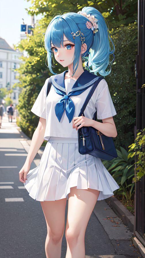 青が基調なセーラー服姿私可愛いのです💙
