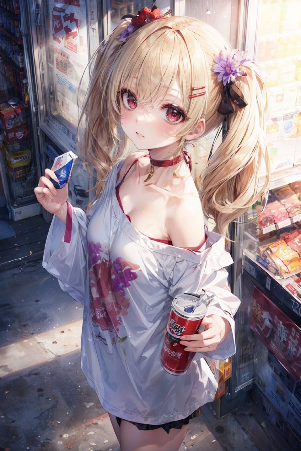 方肩を出した大きなシャツを着て頬を赤らめてとっても可愛いのです🥰