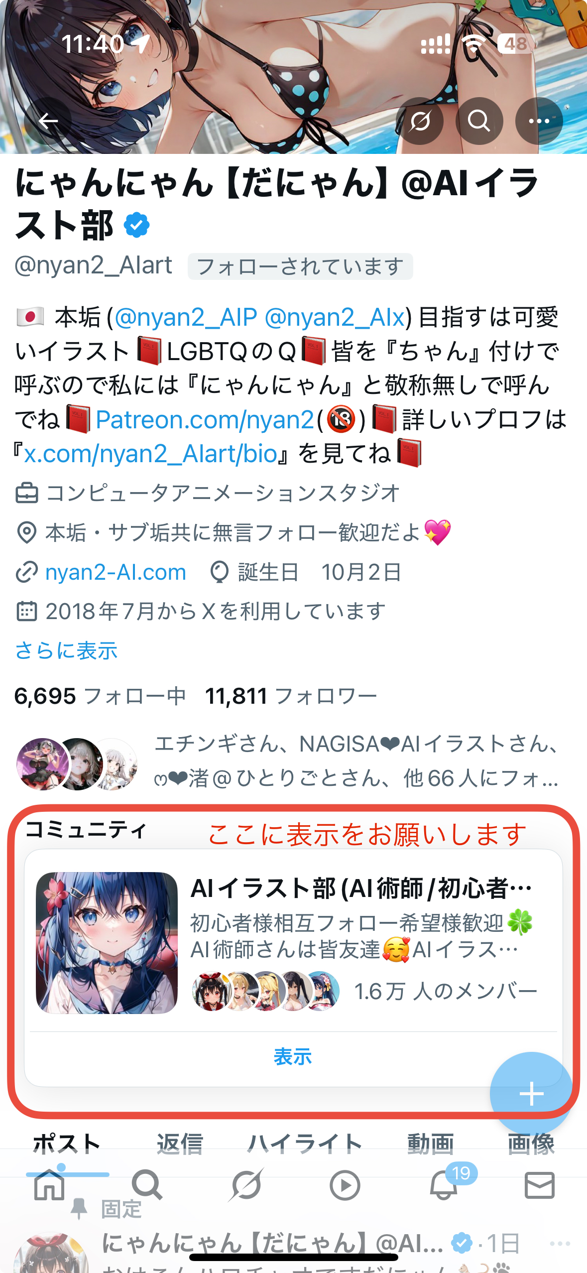 ✅AIイラスト部のプロフィールスポットライト(リンク)をあなたのXのプロフィールに貼る協力お願いします