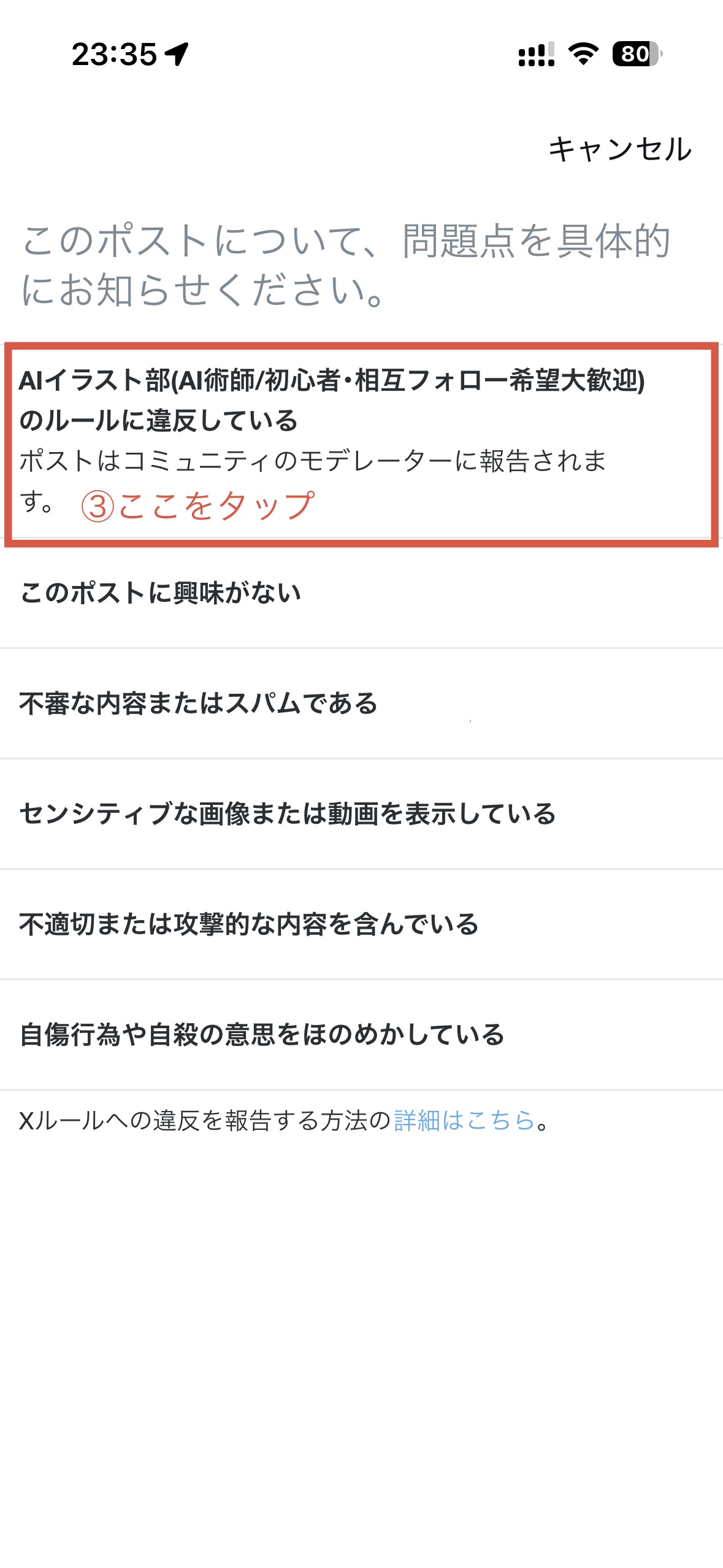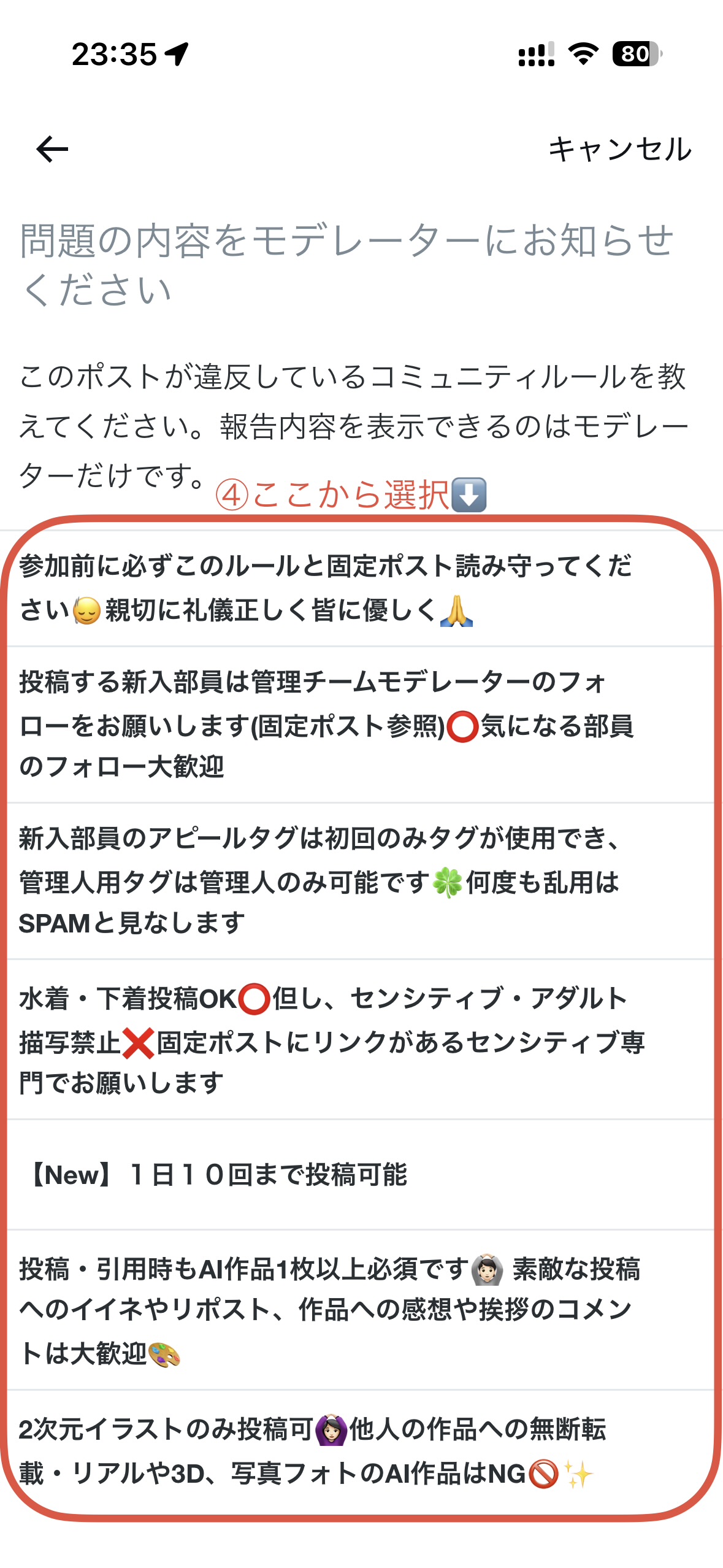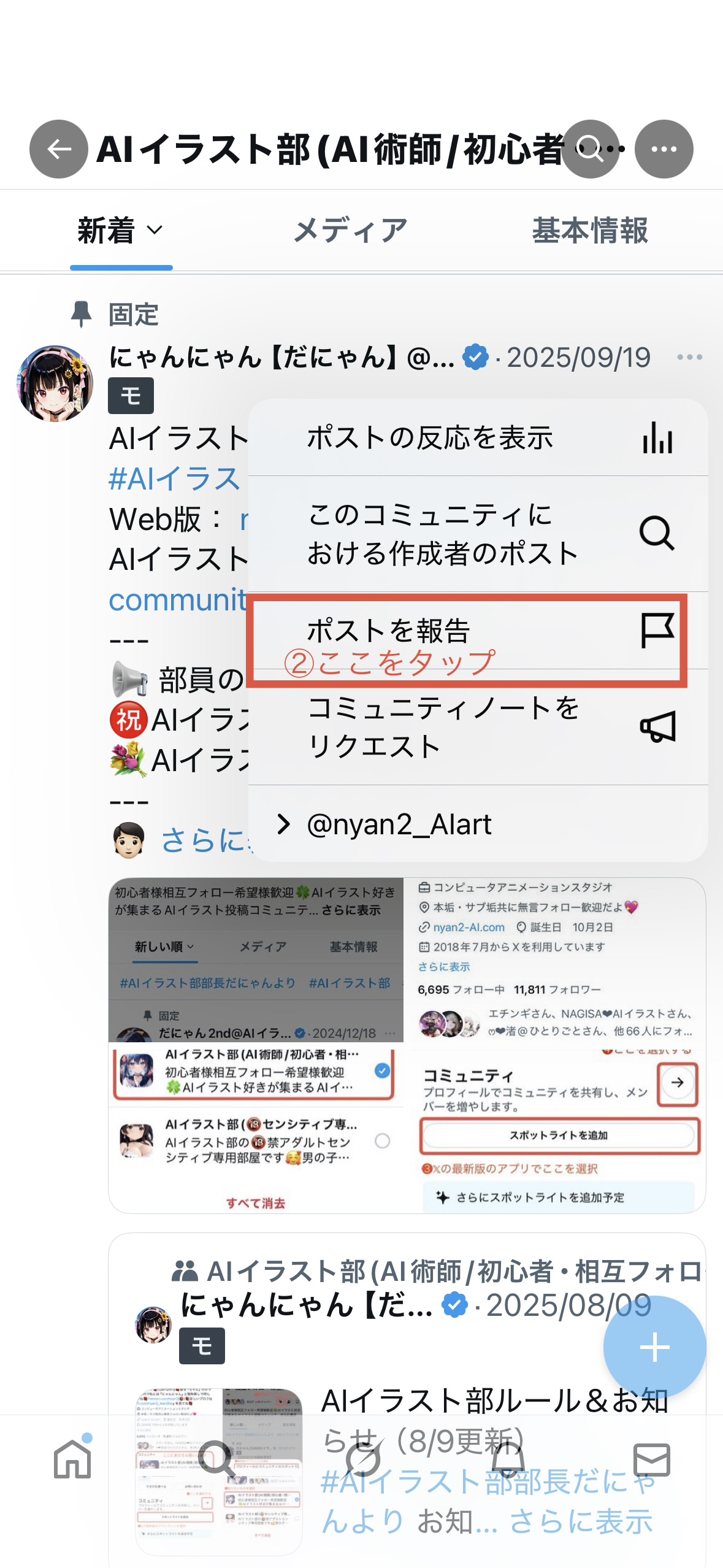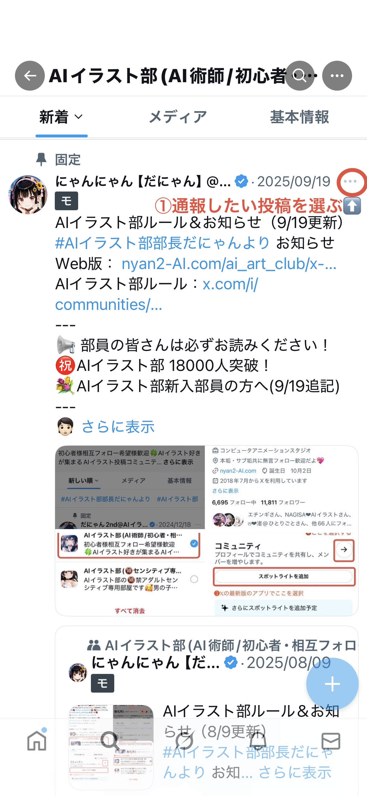✅管理チームが全投稿をチェックするのは難しいため、ルール違反を見つけたら投稿の「…(3点リーダー)」から【ポストの報告】をお願いします