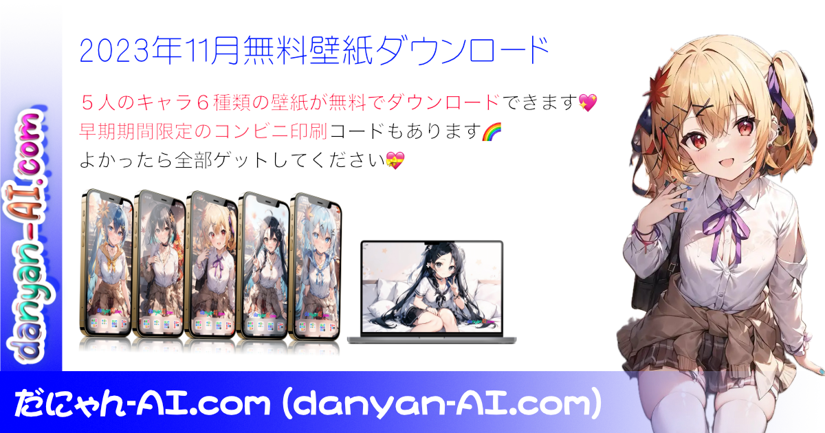 ここでは、だにゃんが制作した作品を無料で壁紙が制限なくダウンロードが取り放題できます💕