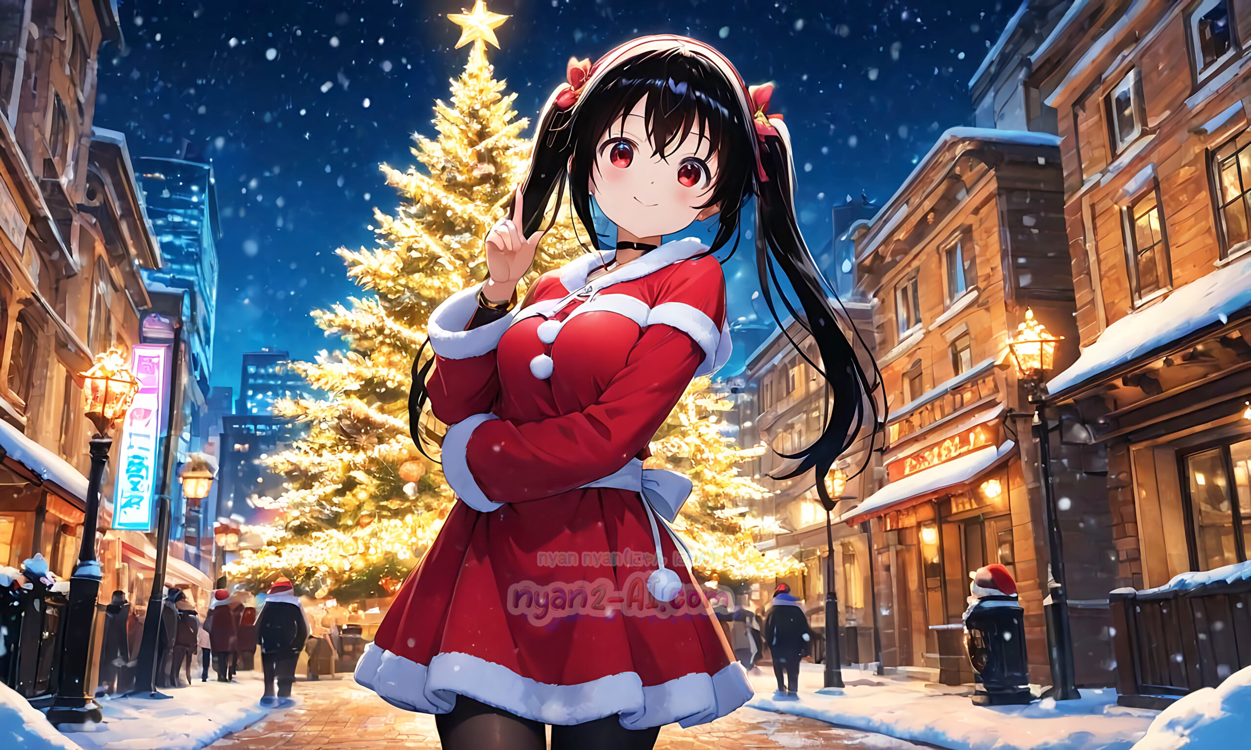 2025年12月壁紙「クリスマスを過ごしているにゃにゃん娘」をテーマに「クリスマス」の綺麗な壁紙を目指してみました。