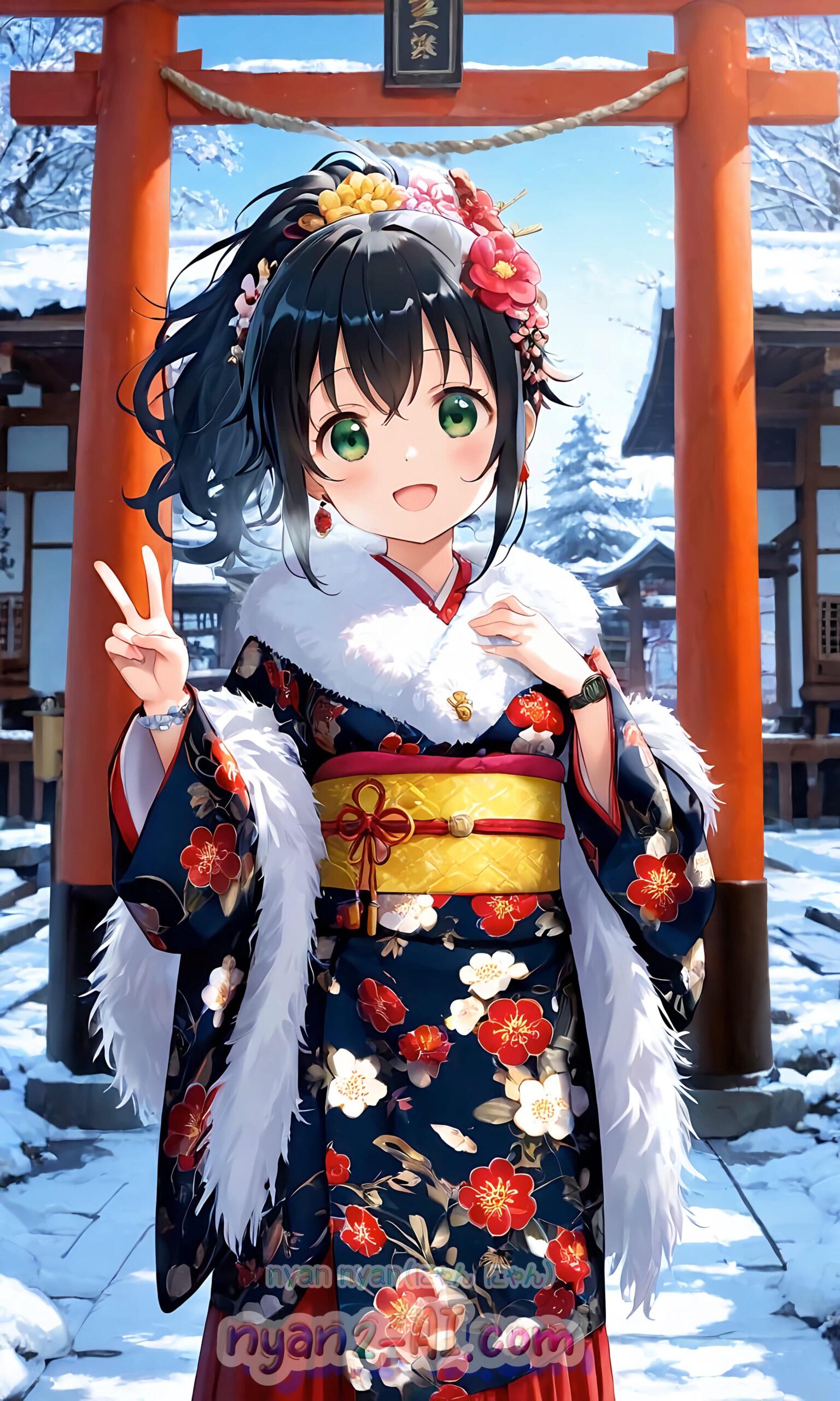 あおにゃん今月は「お正月のにゃにゃん娘」がテーマだよ🥰
