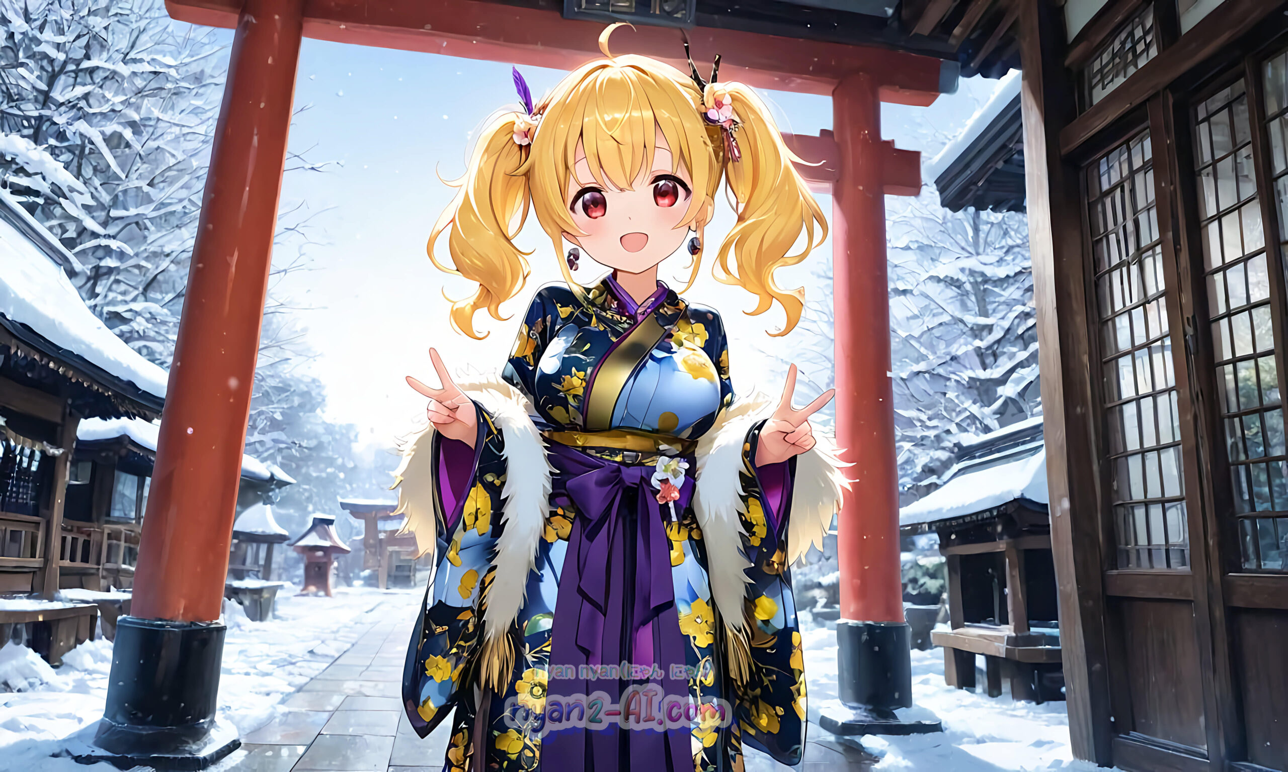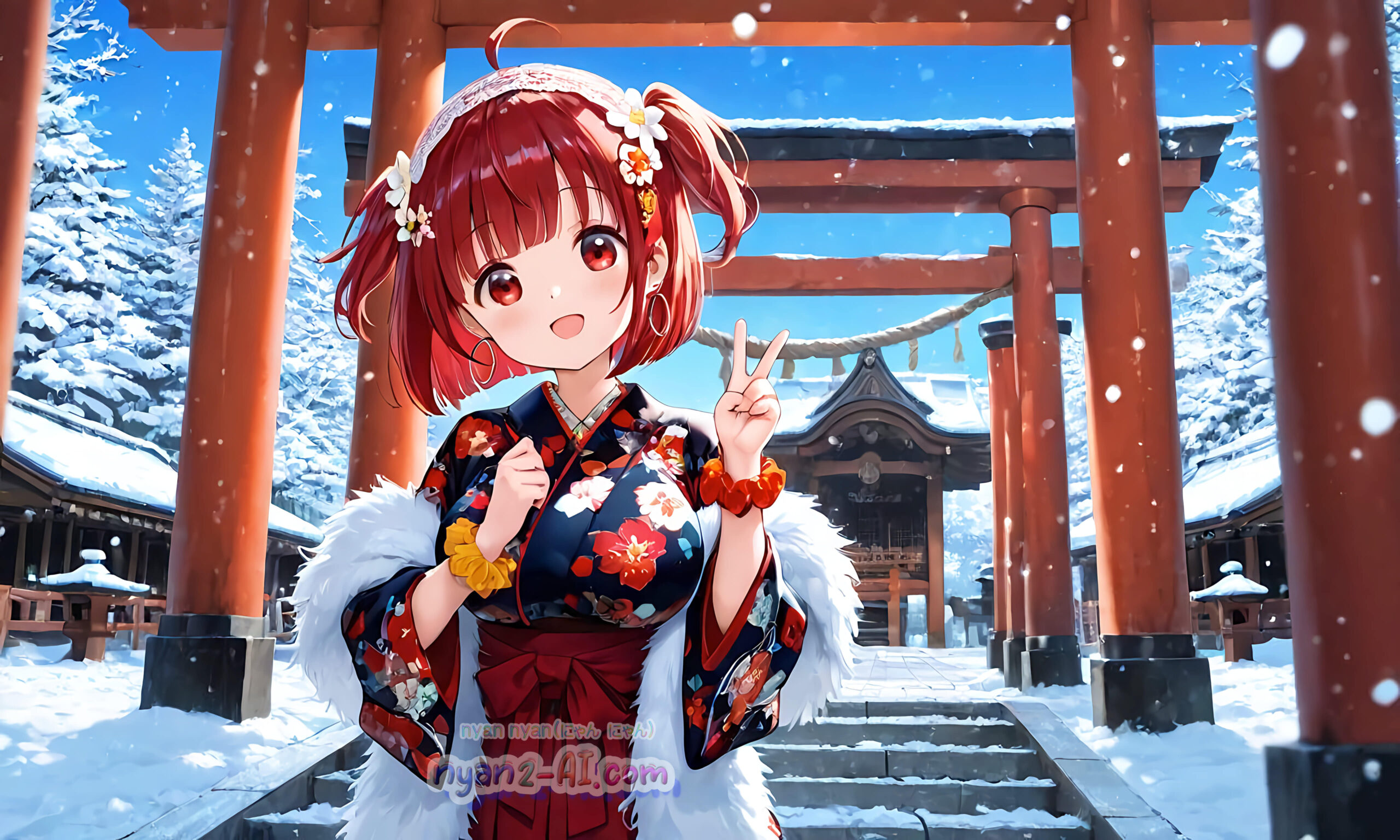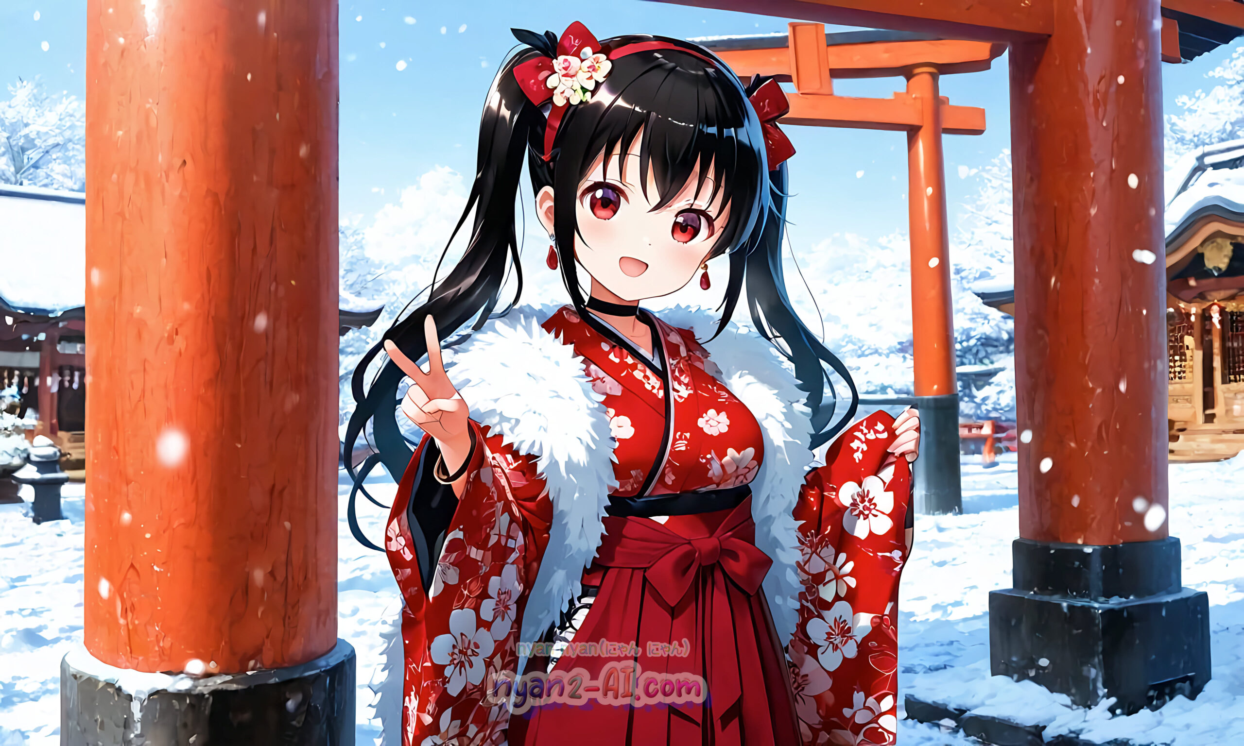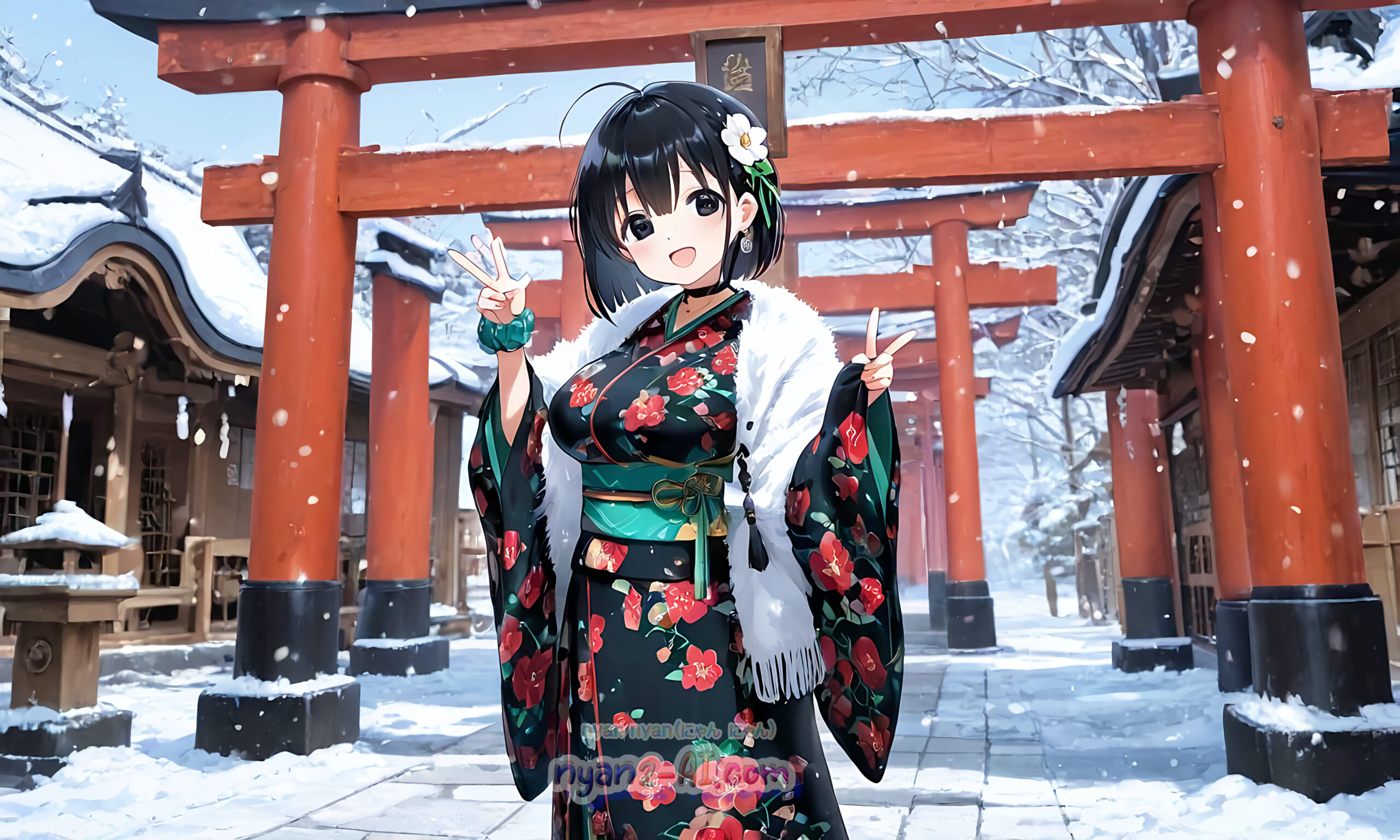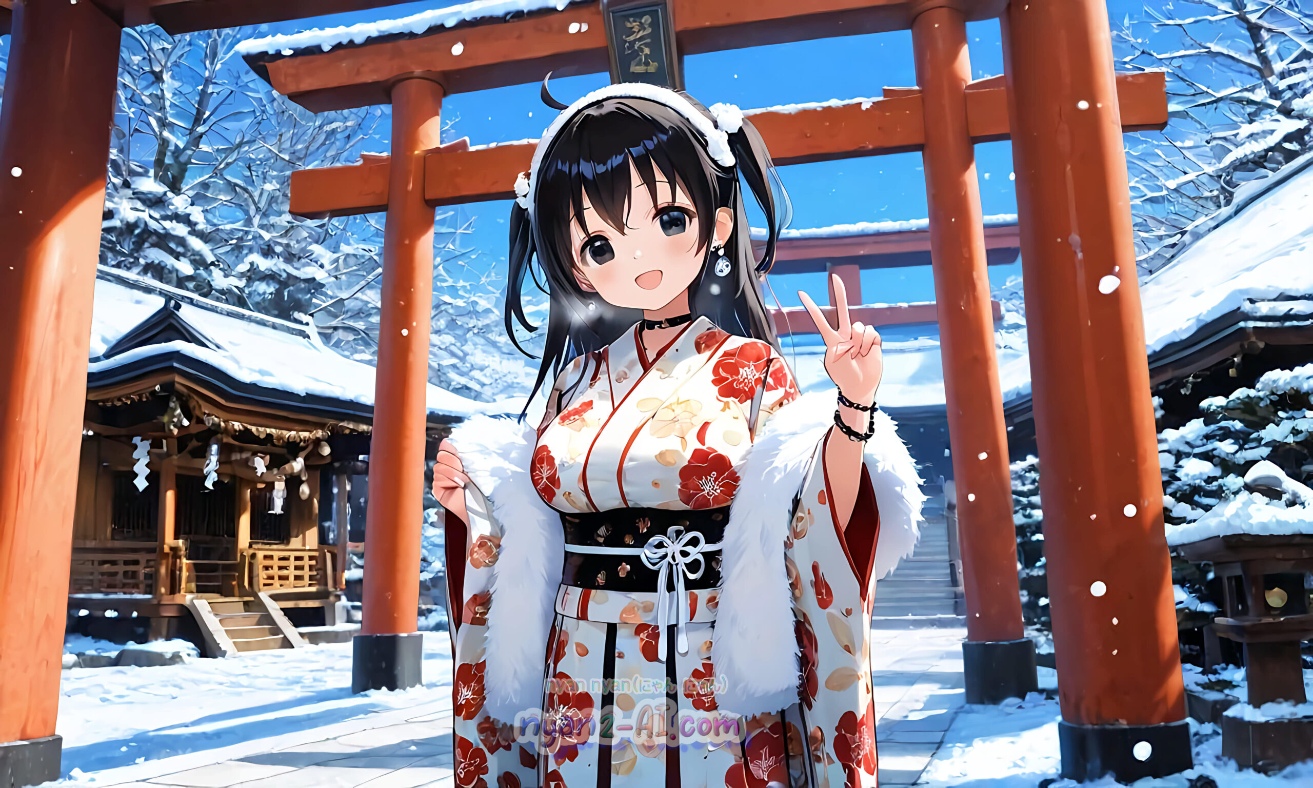 2026年01月壁紙「お正月過ごしているにゃにゃん娘」をテーマに「お正月」の綺麗な壁紙を目指してみました。