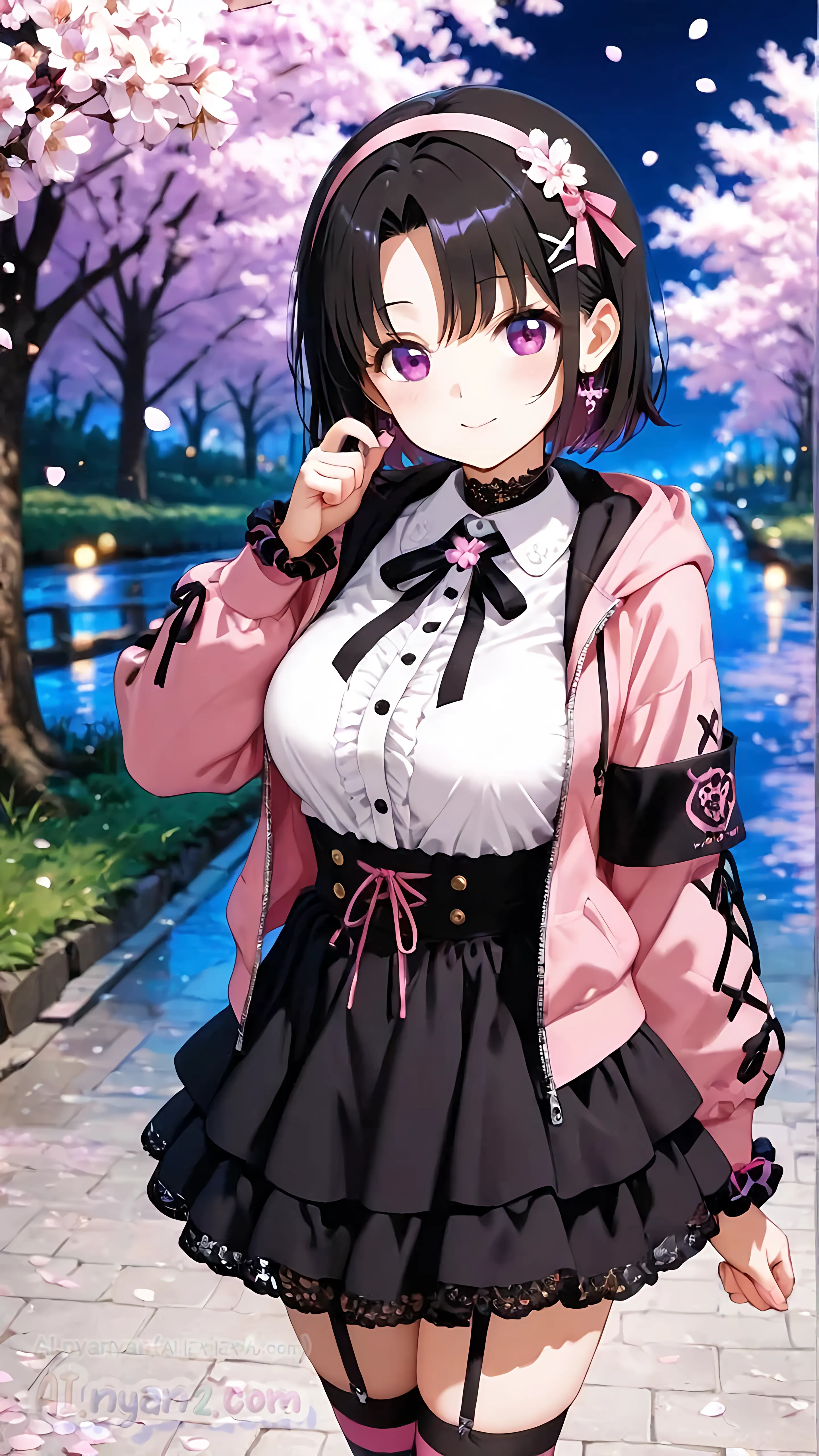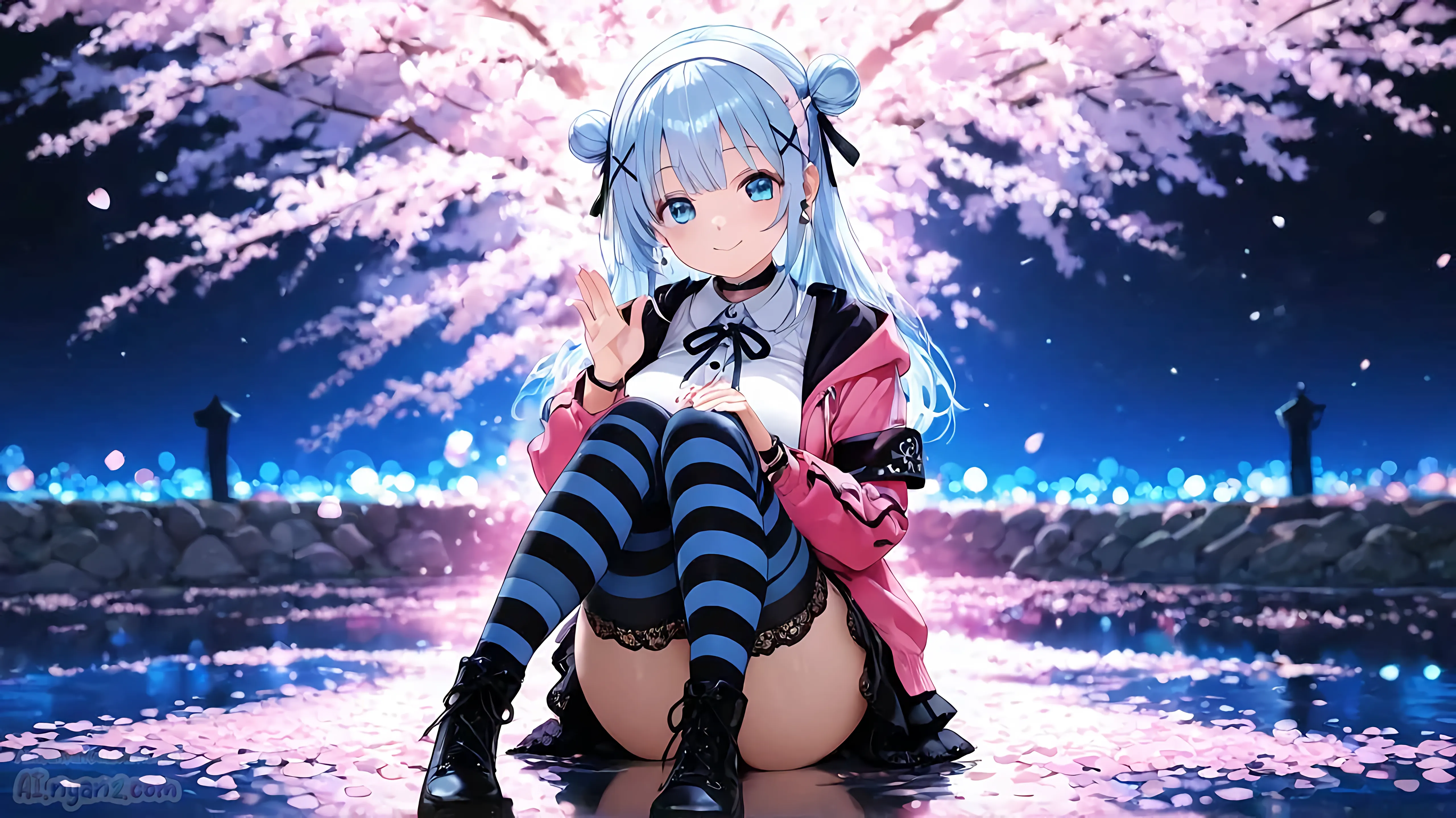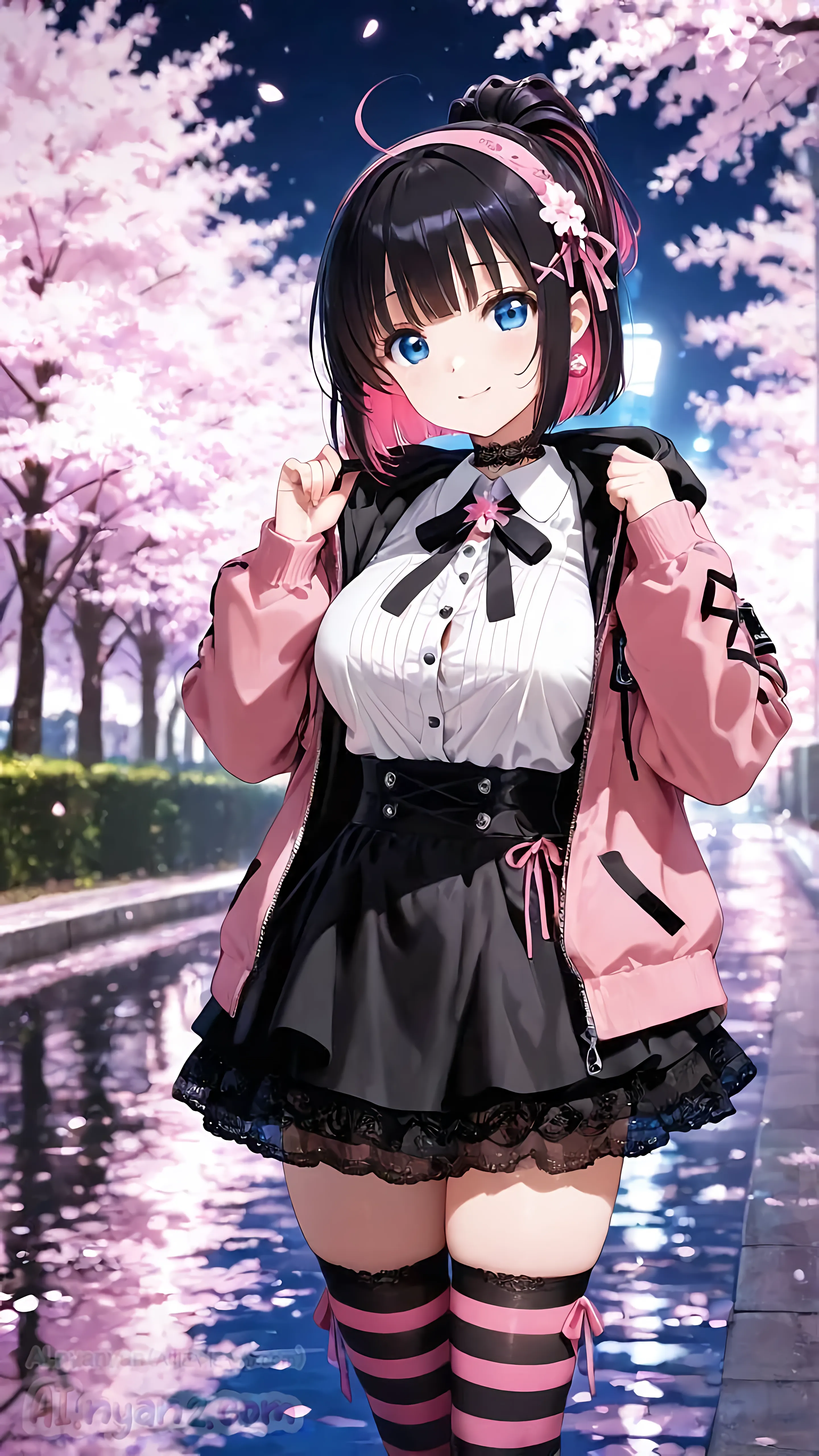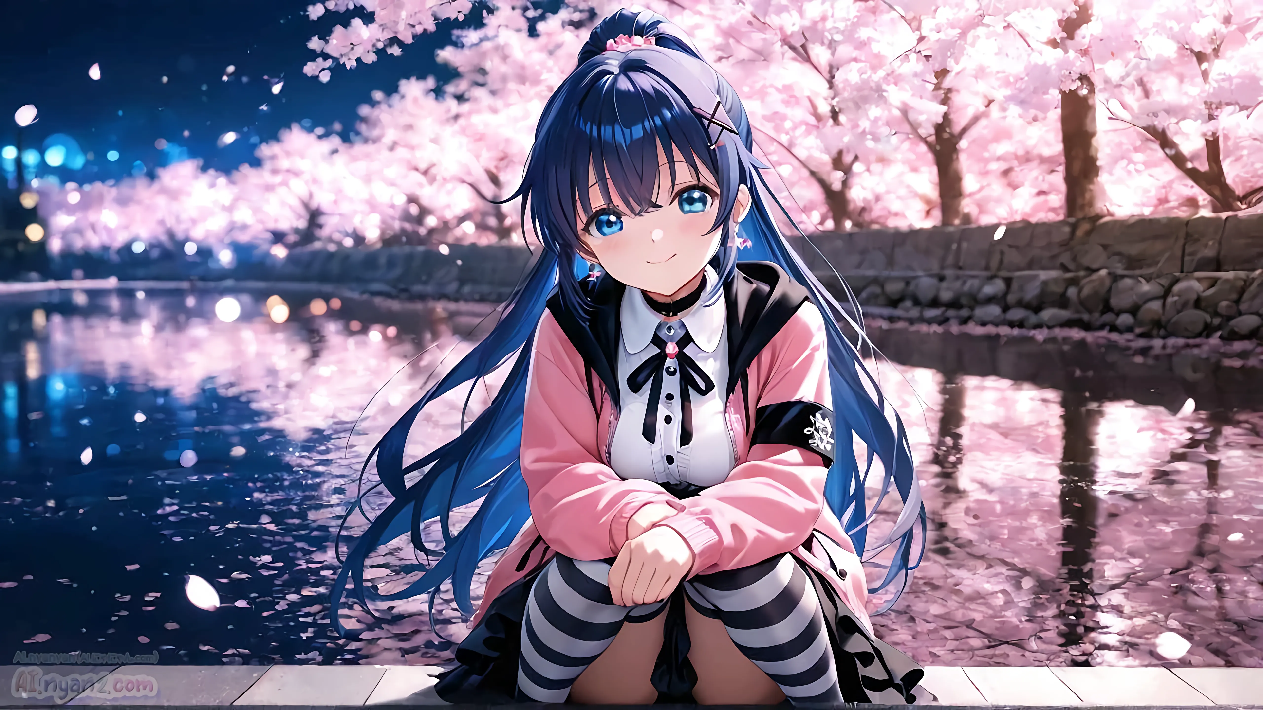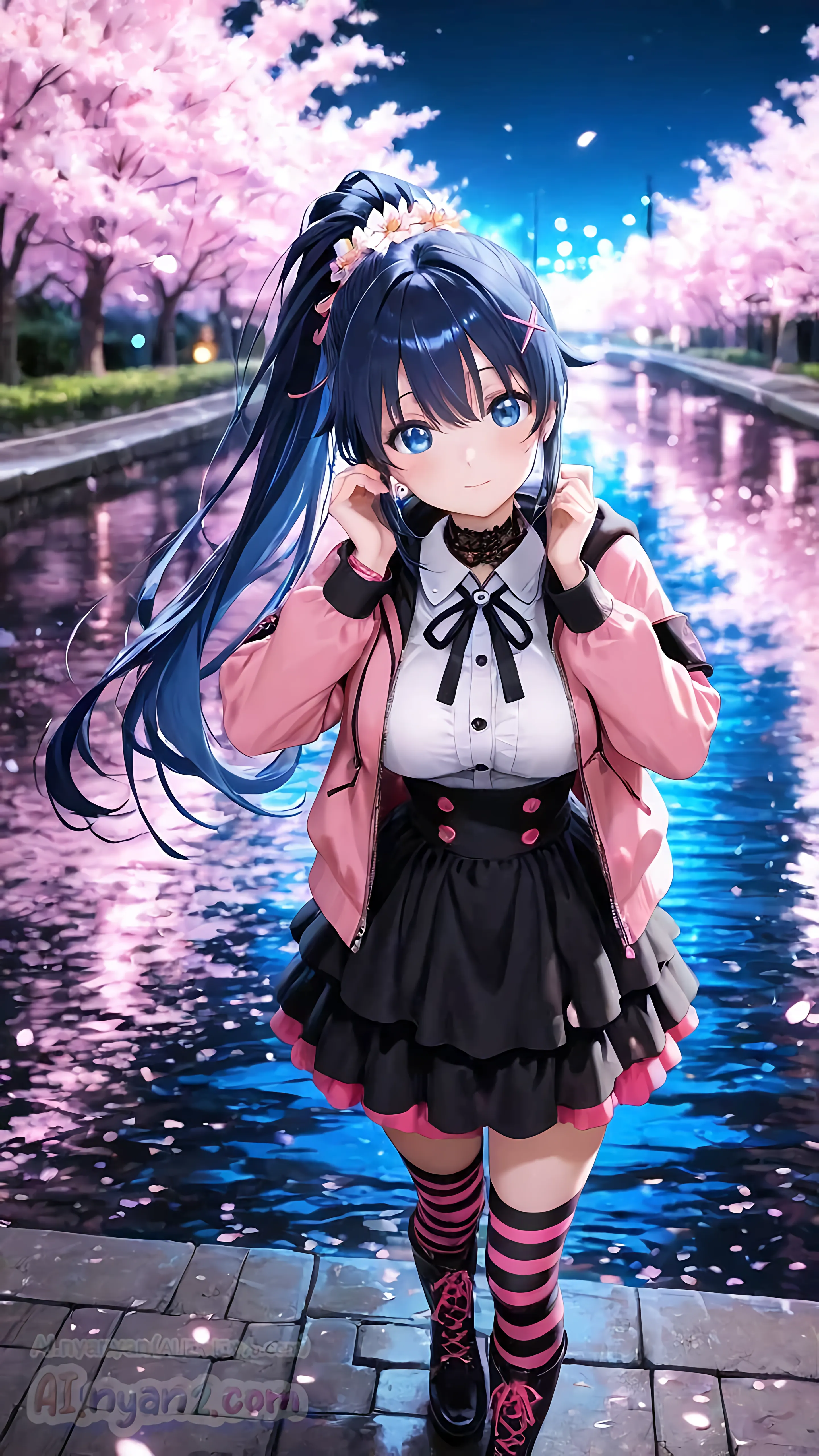 あおにゃん今月は「夜桜」がテーマだよ🌸