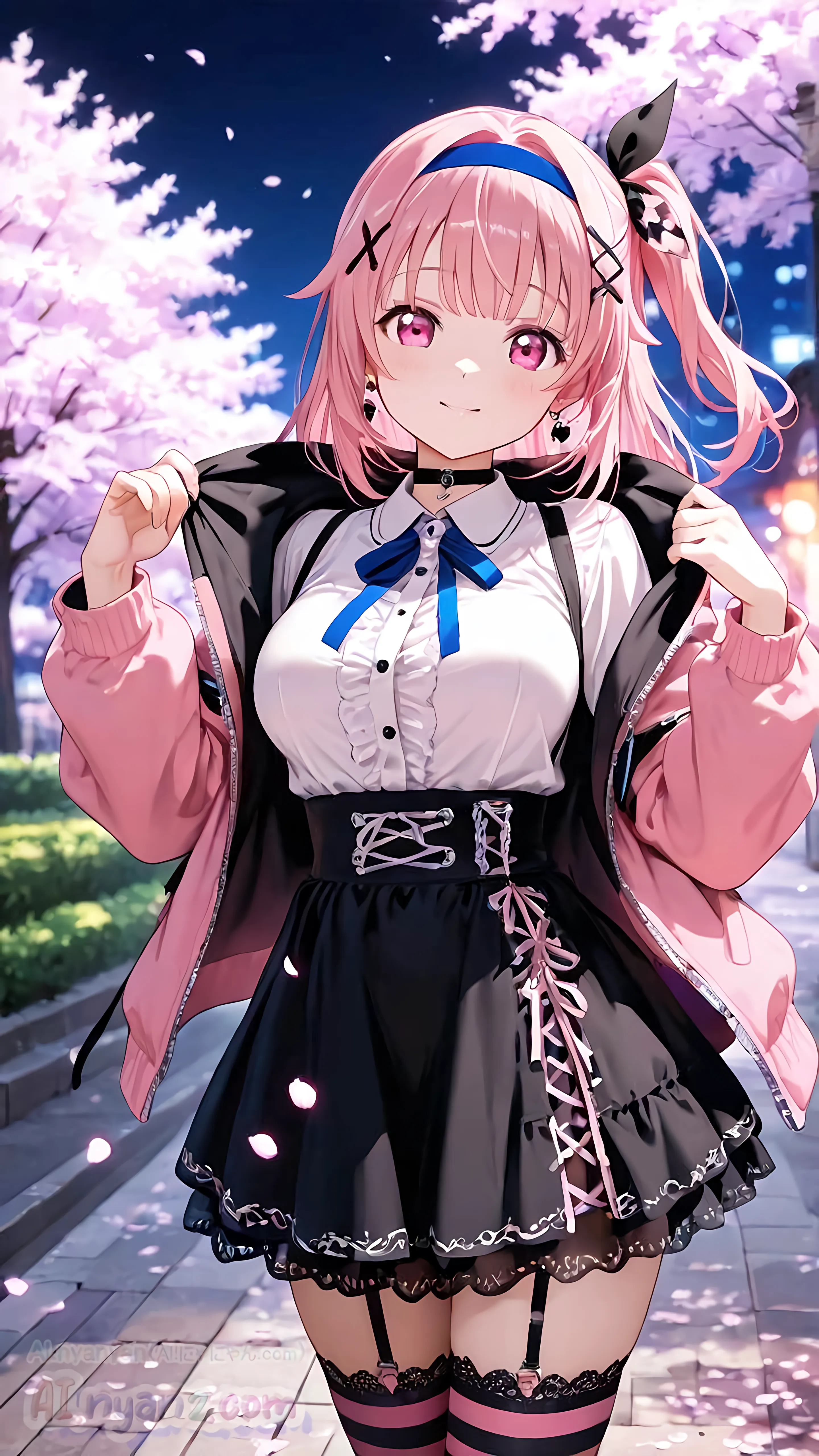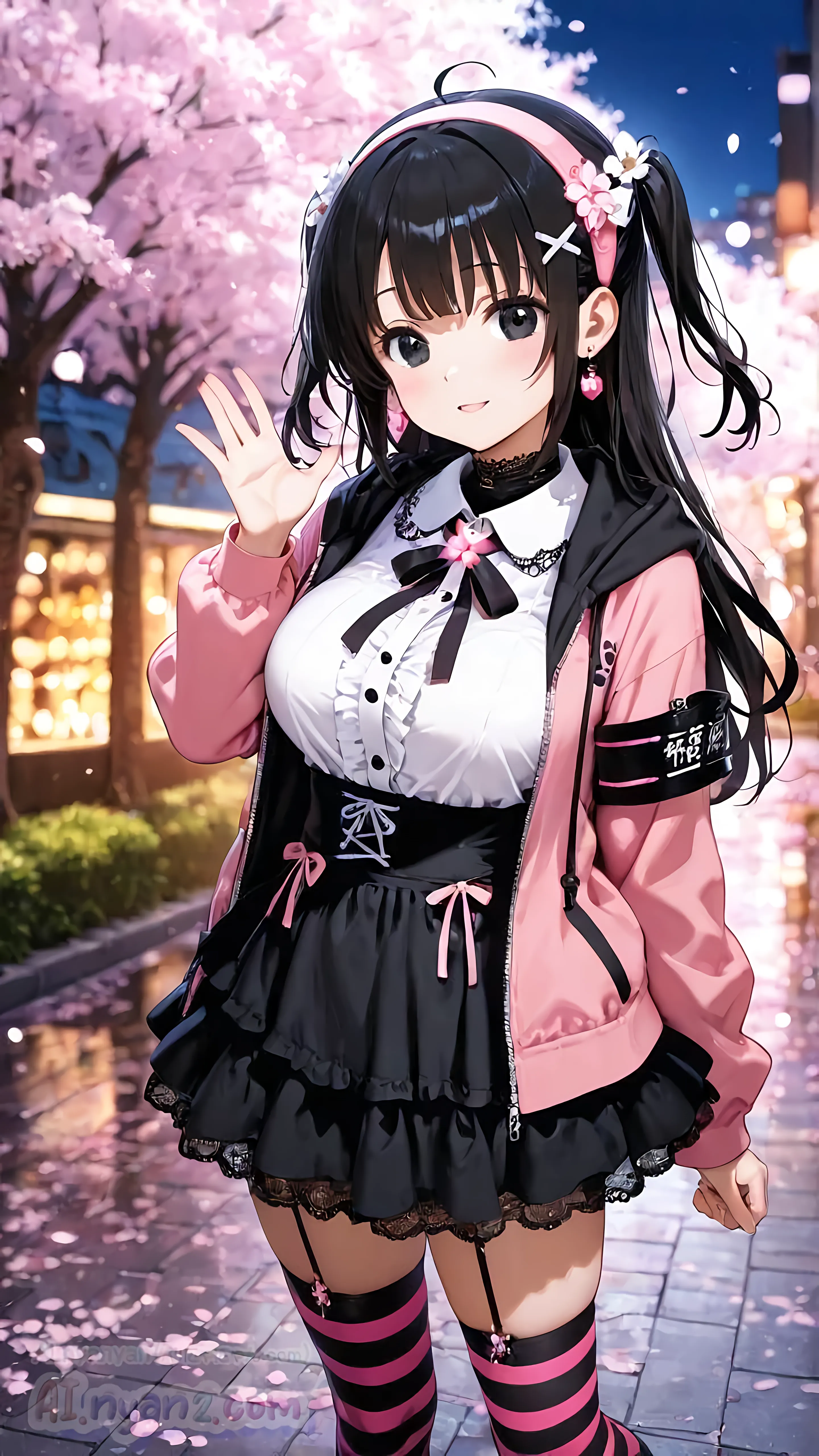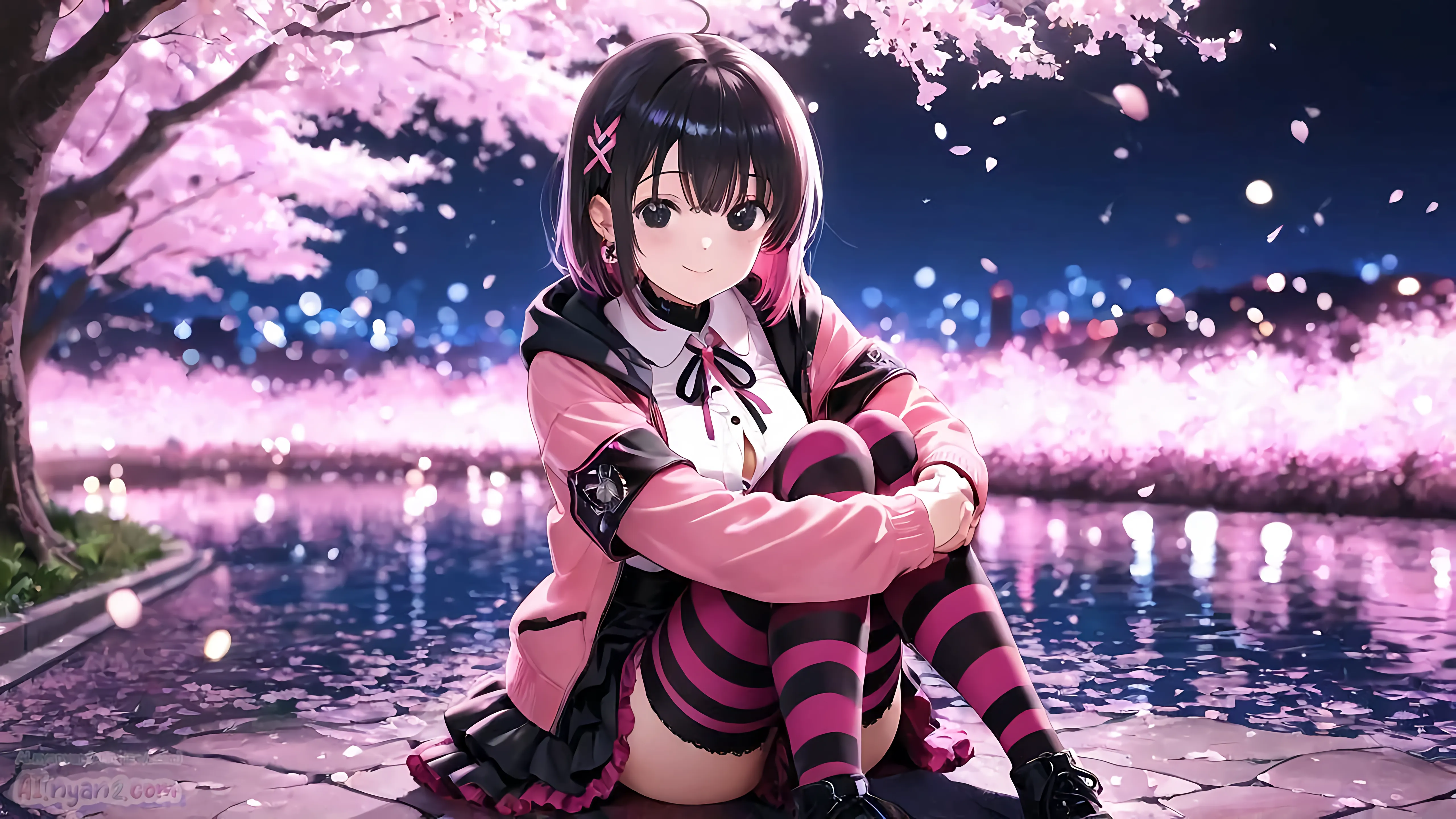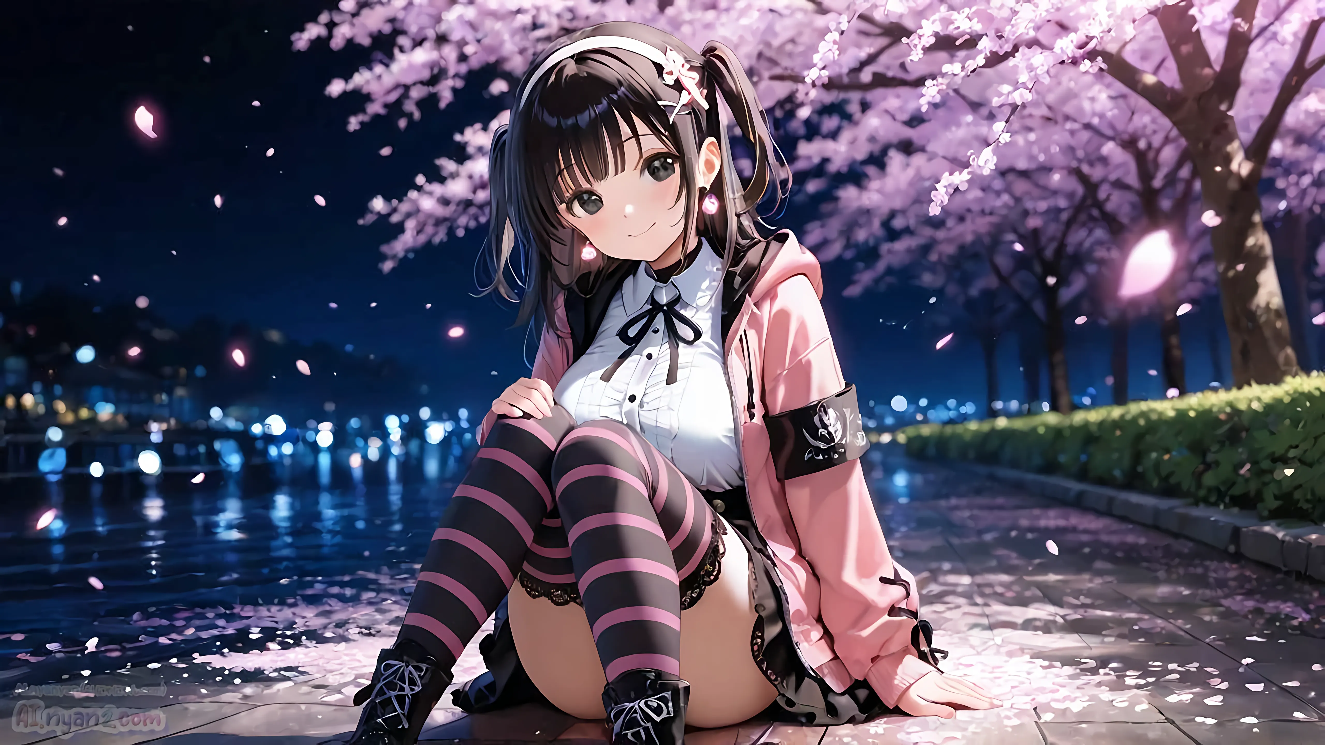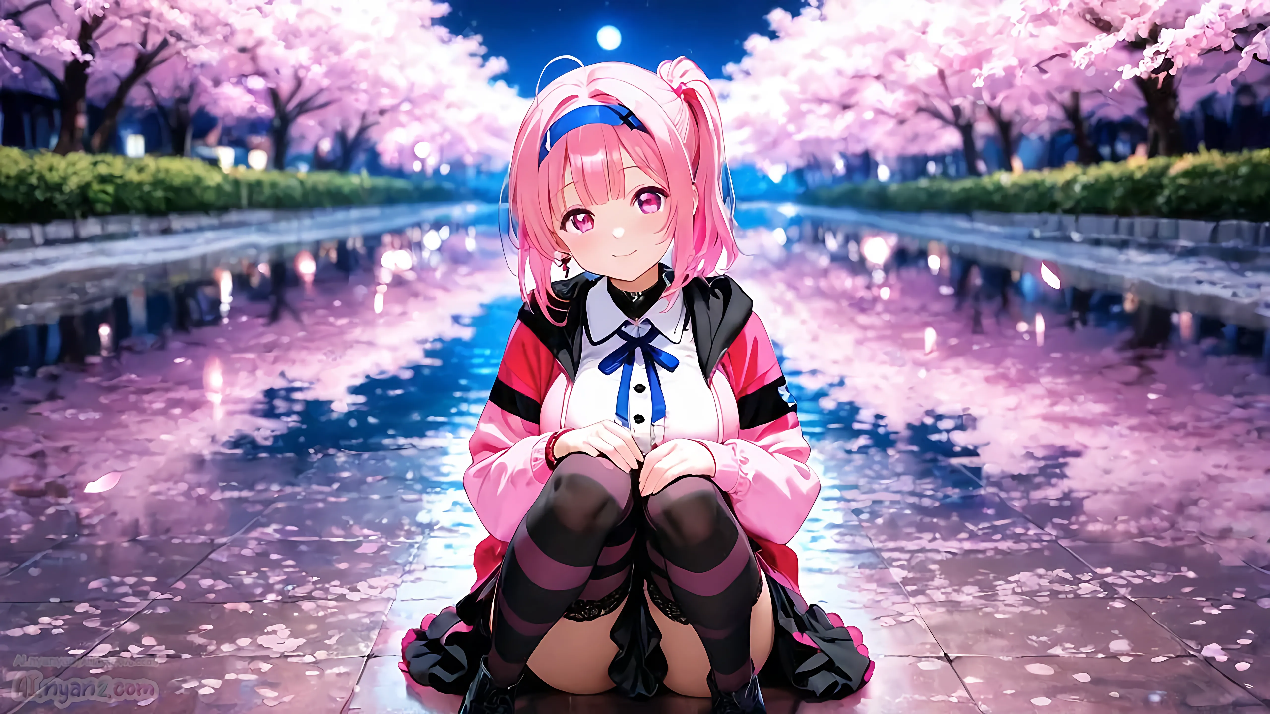 あおにゃん今月は「夜桜」がテーマだよ🌸