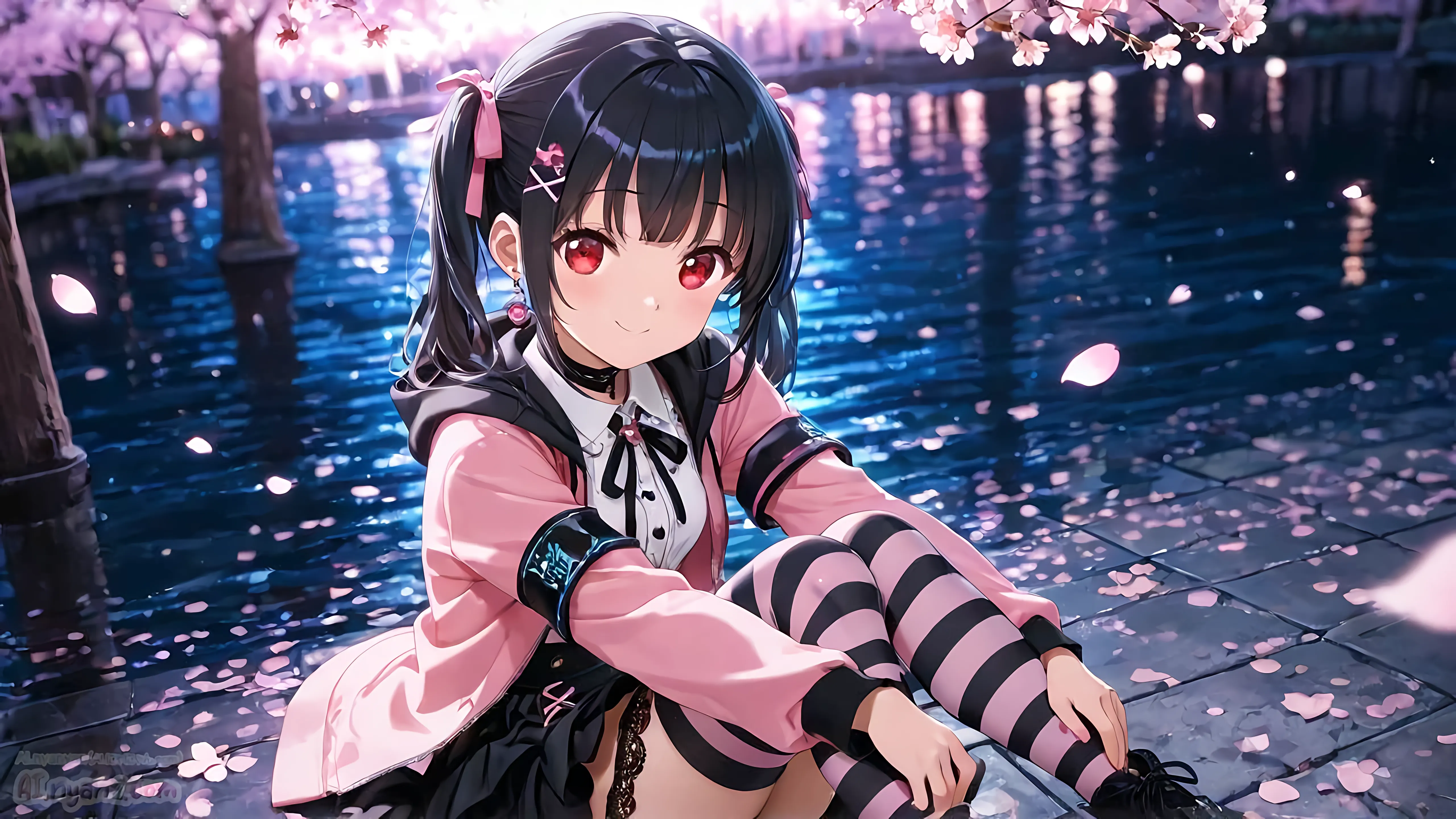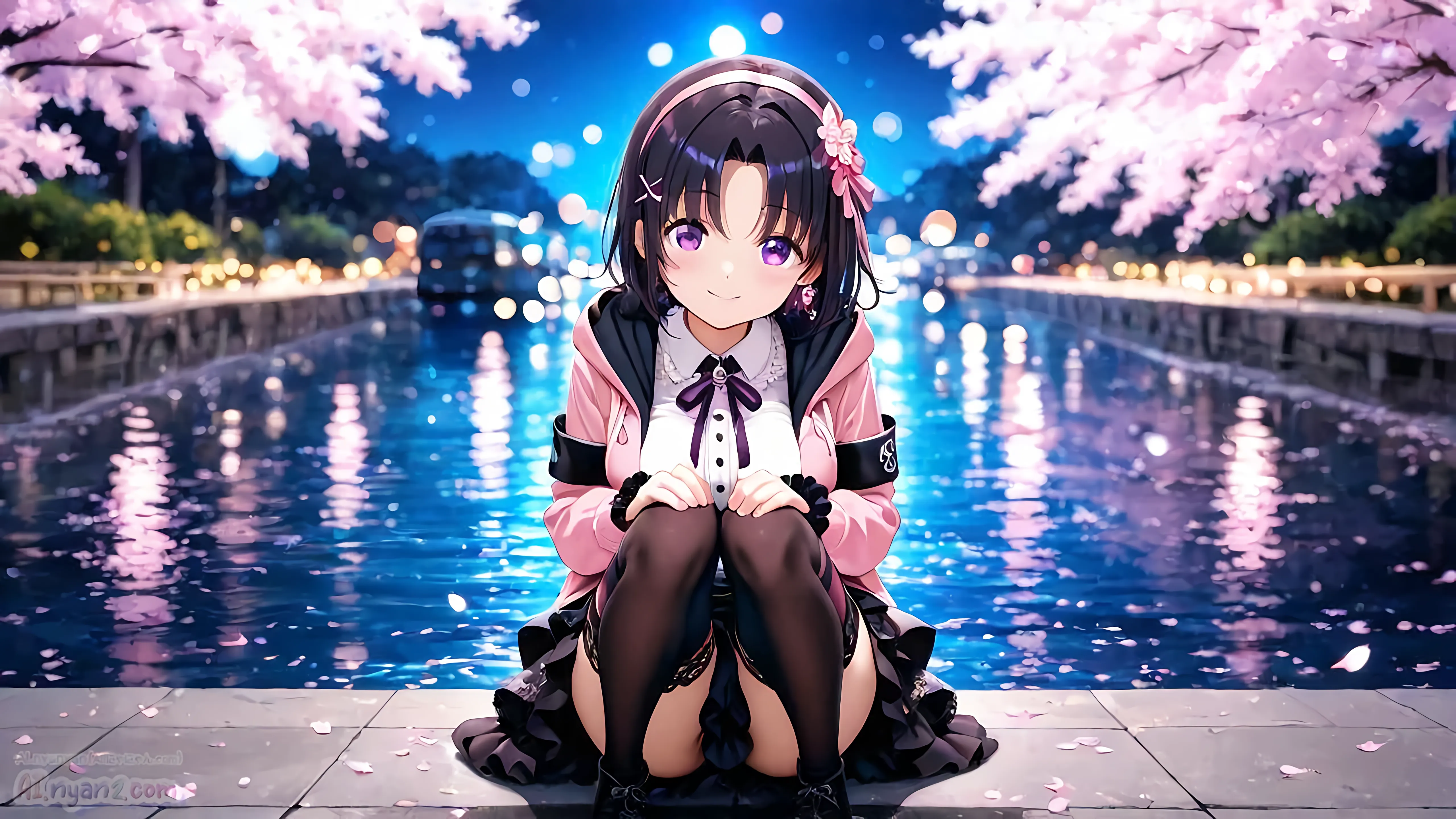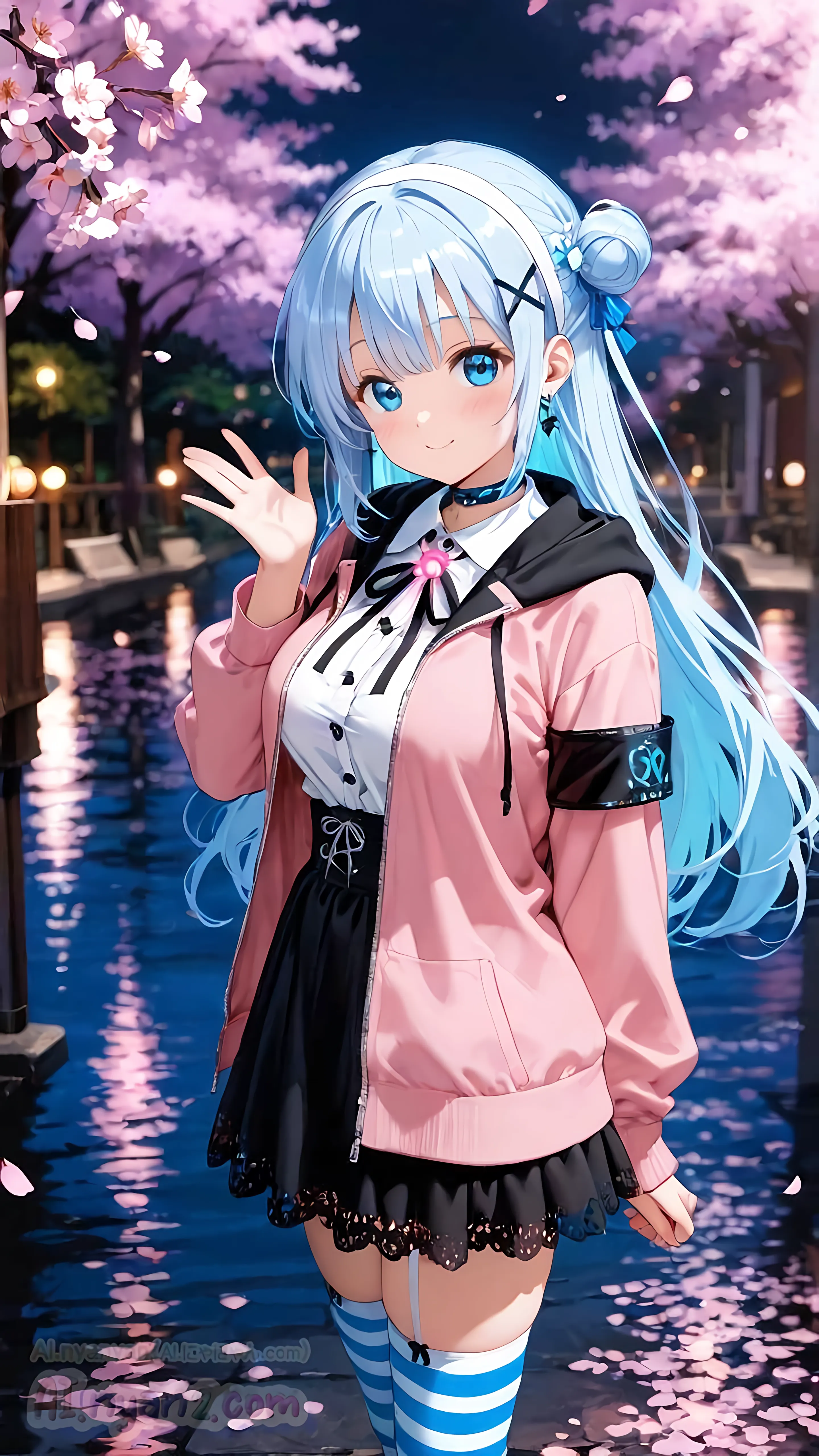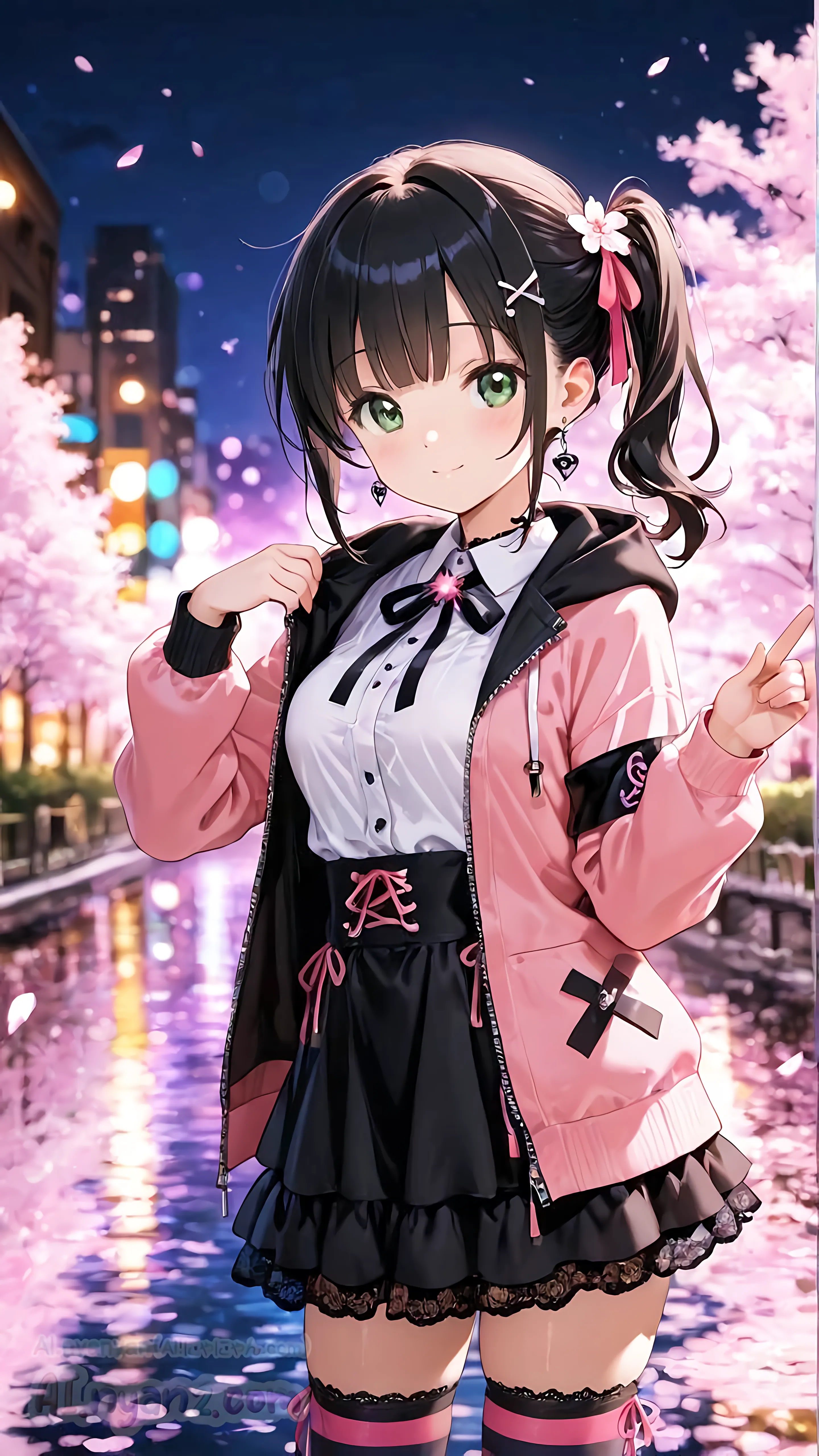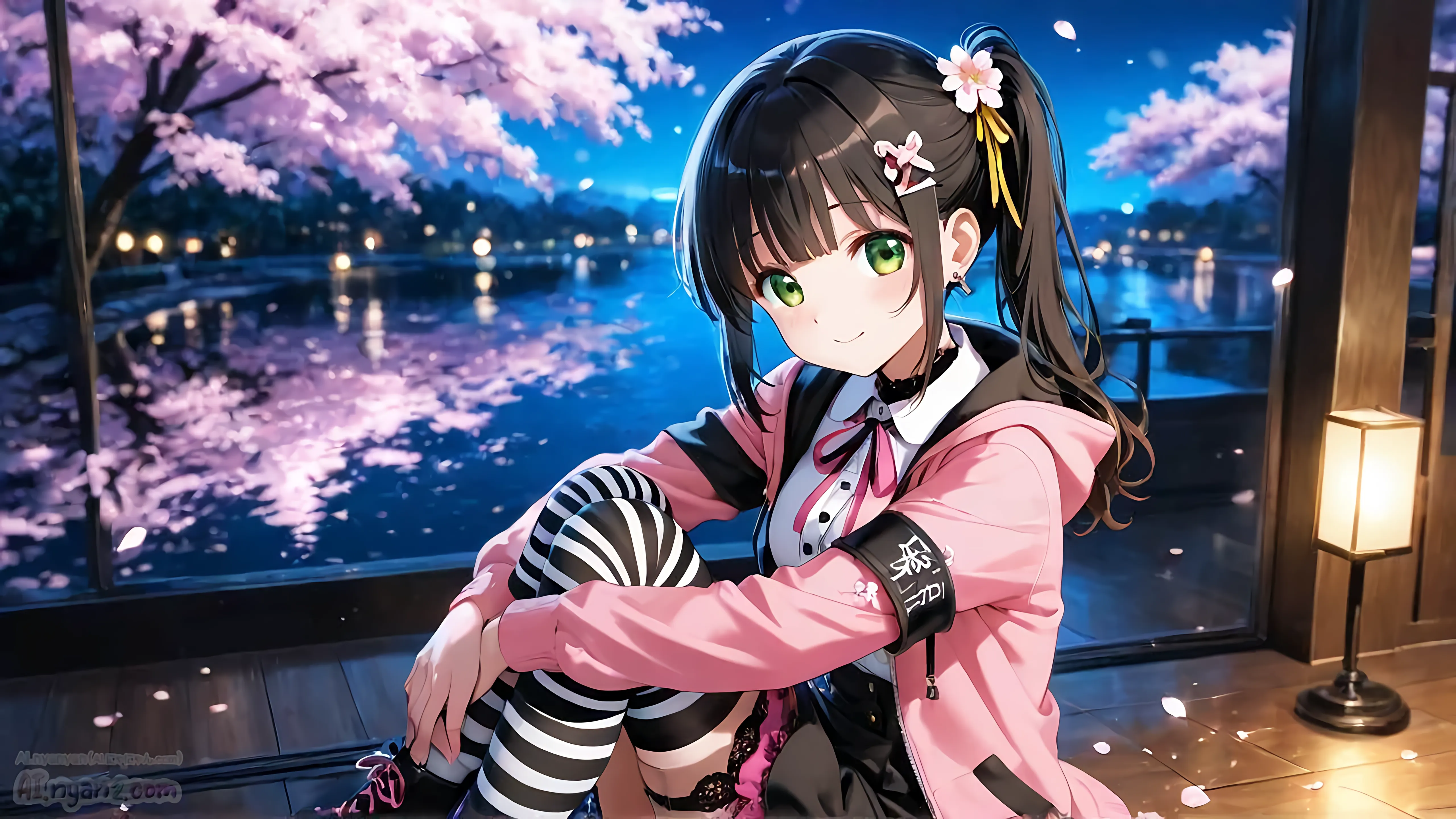 あおにゃん今月は「夜桜」がテーマだよ🌸