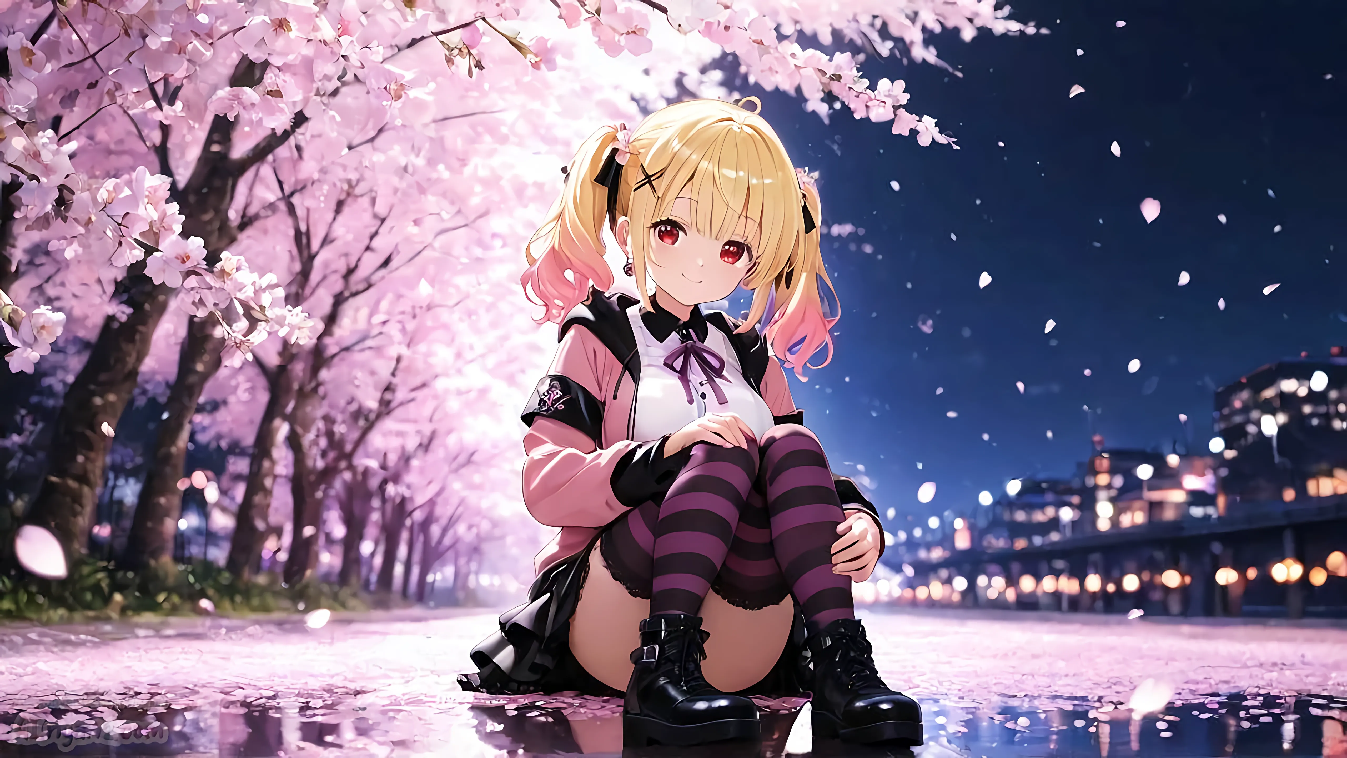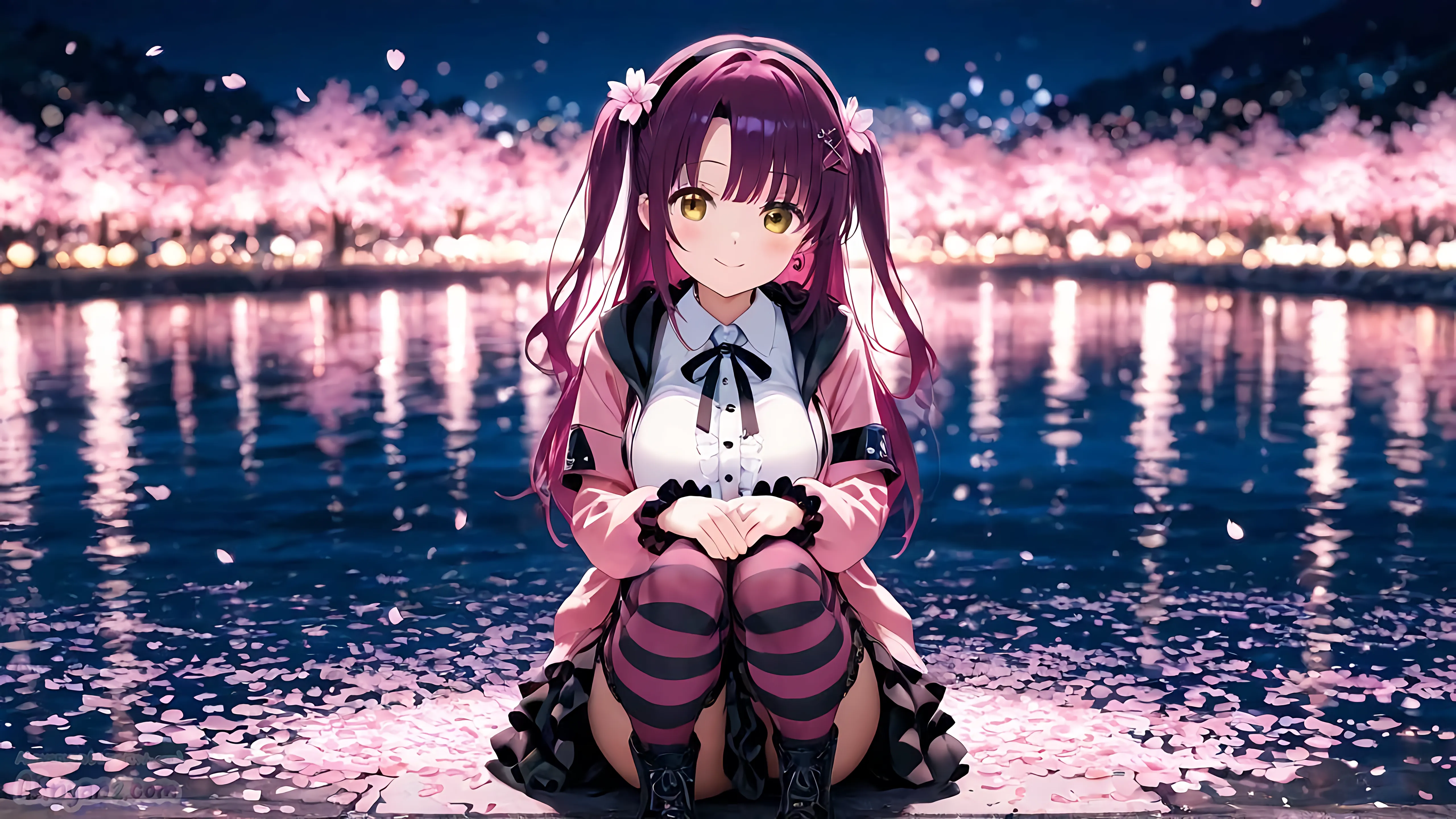 少し遅い気がしますが「にゃにゃん娘夜桜まつり」をテーマに「夜桜」の綺麗な壁紙を目指してみました。